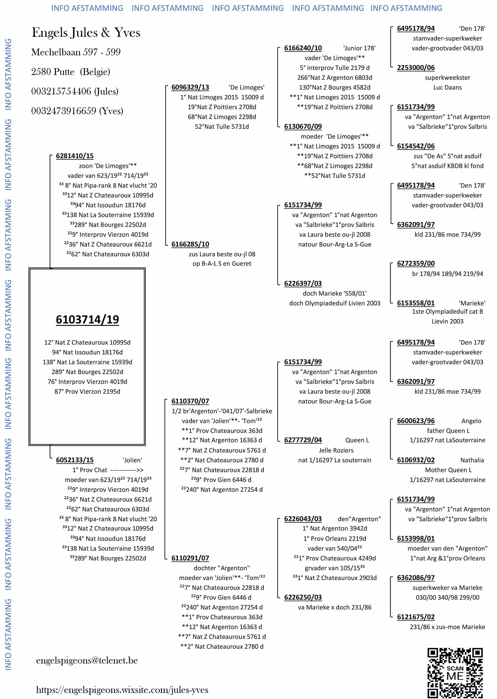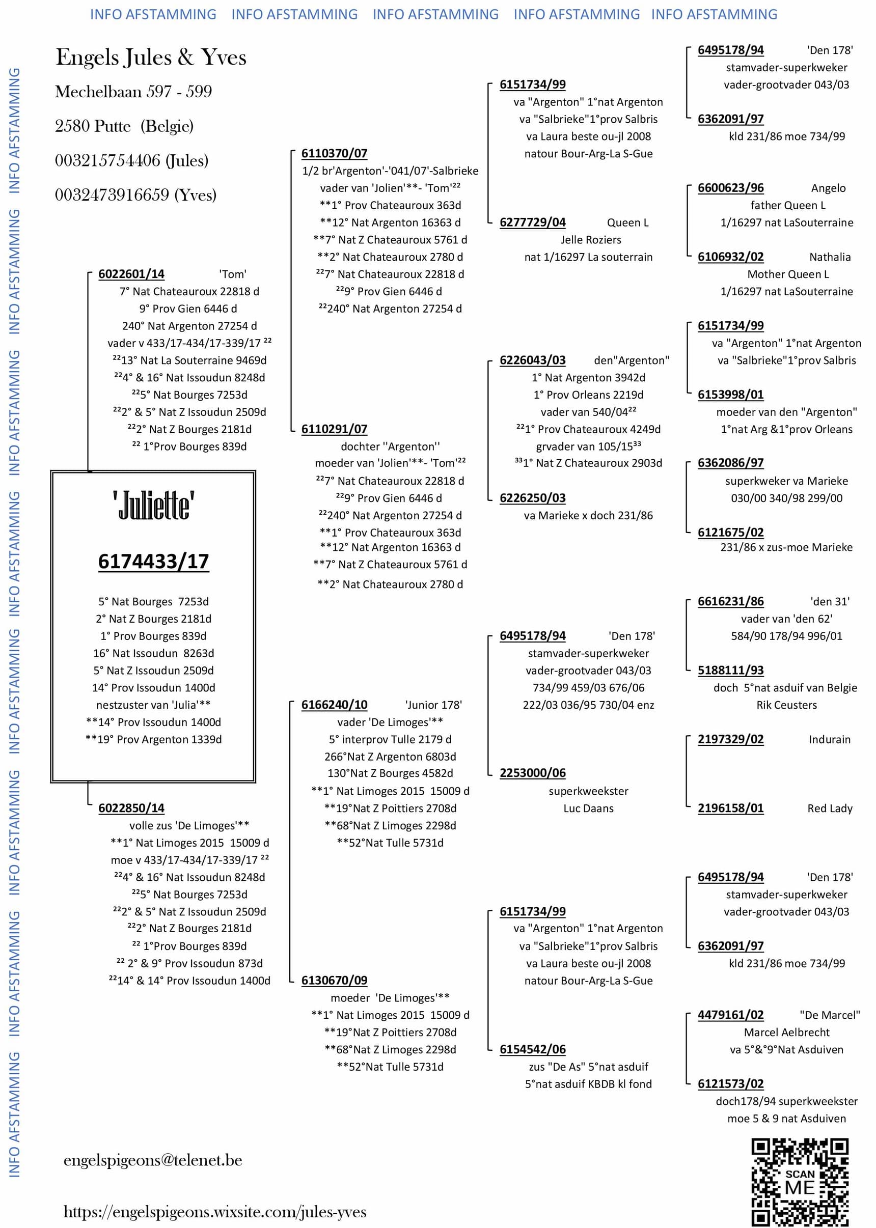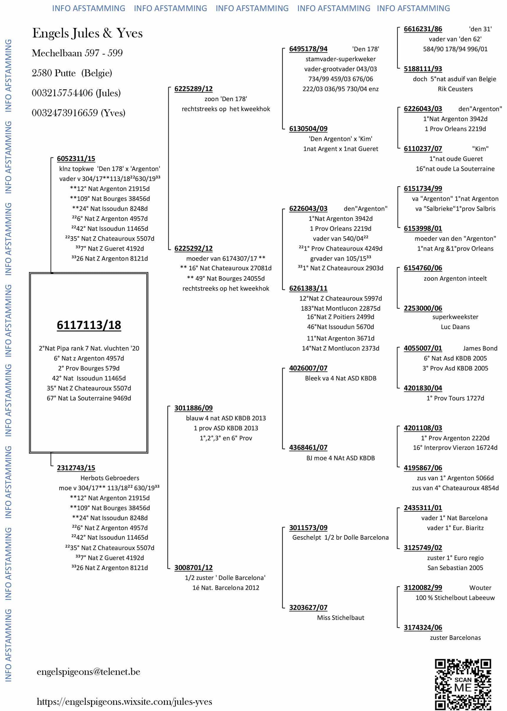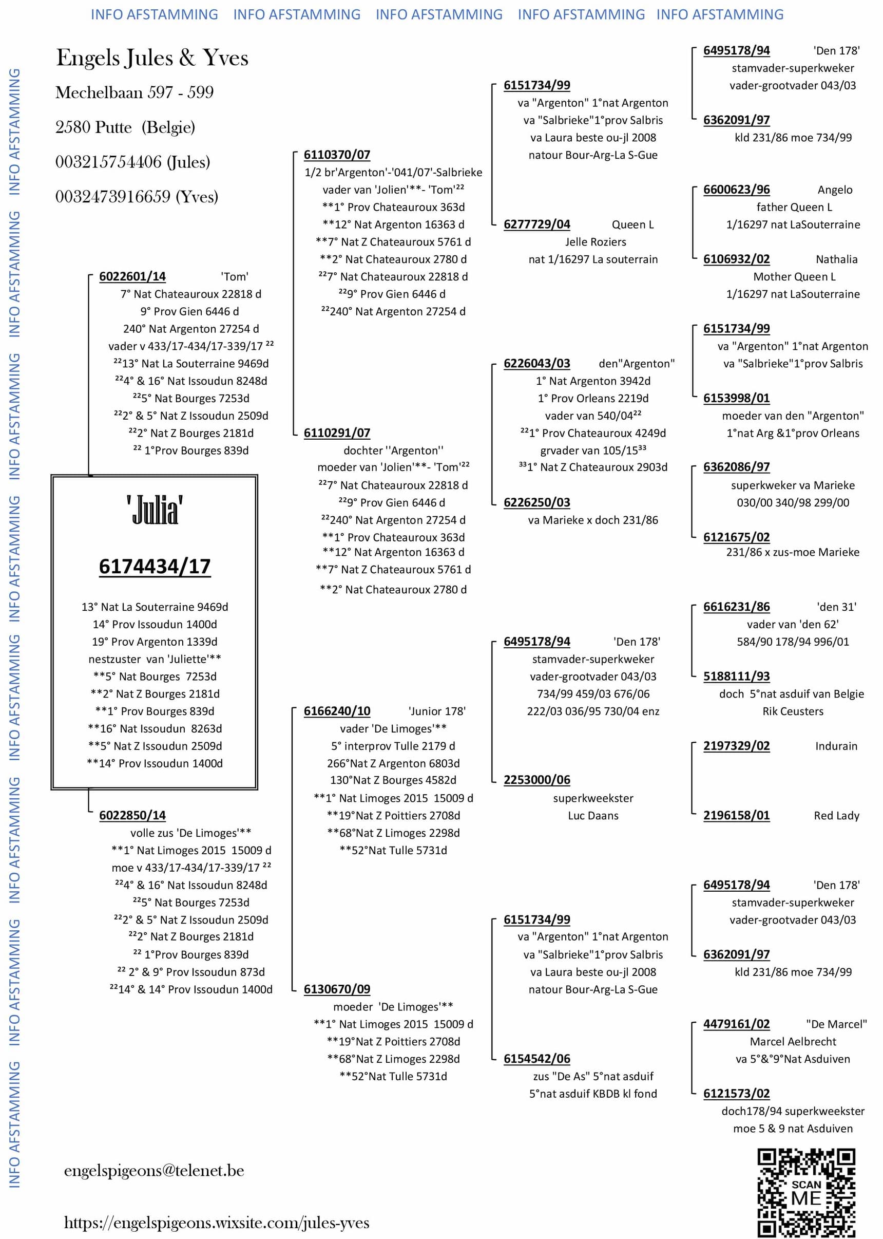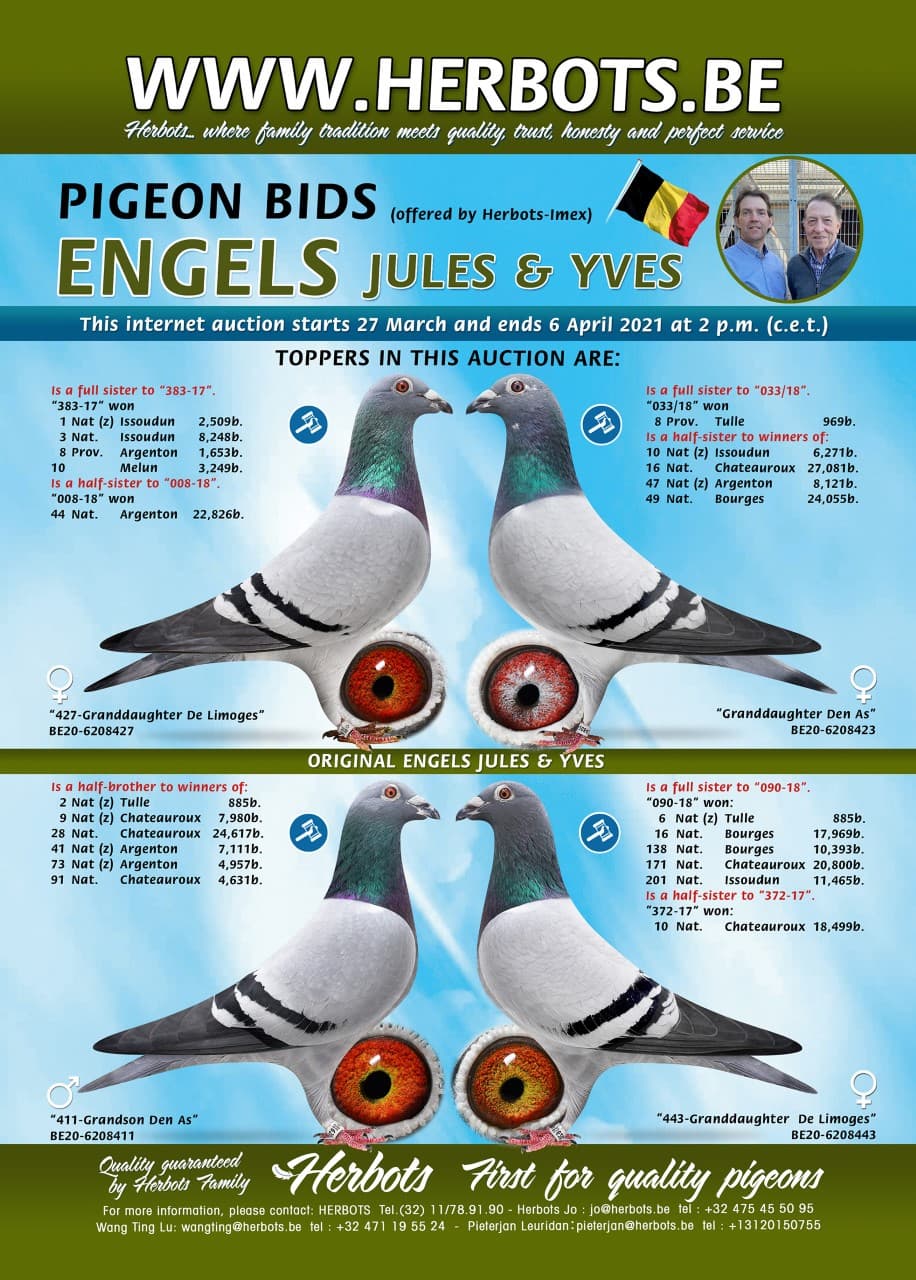 What the history of the Engels pigeons is concerned from grandfather Flor, to the brother Jos & Jules, until now the new father-son tandem Jules & Yves, there’s nothing new to tell. Everybody knows this story by now. Who never heard of ‘De Genopte’, ‘Den Argenton’, ‘De Limoges’, the worldfamous ‘178’ and ‘Den As’,… and continue on like that for a while. All ace birds, national and national zone winners who didn’t only put amazing results on paper but also got the amazing genes to give it to their sons and daughters, their grandsons and granddaughters…