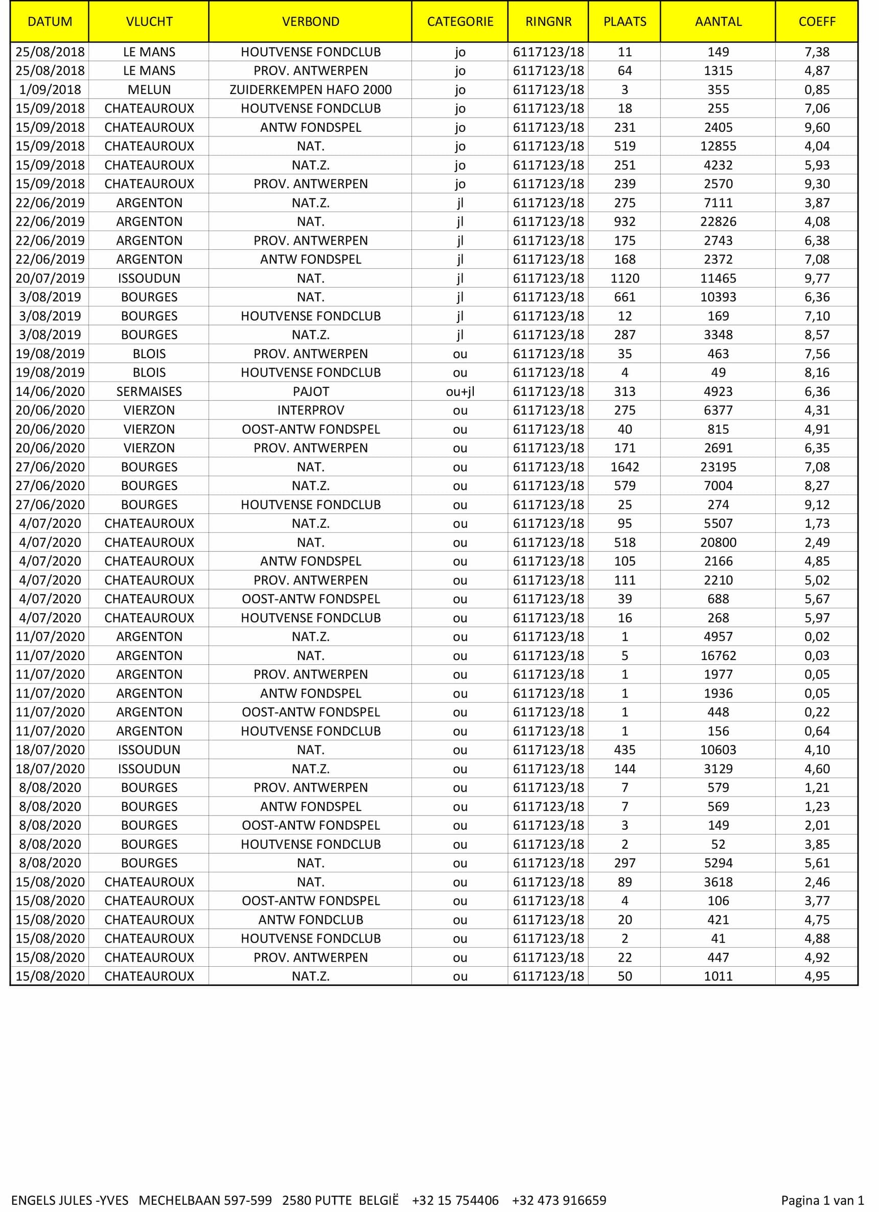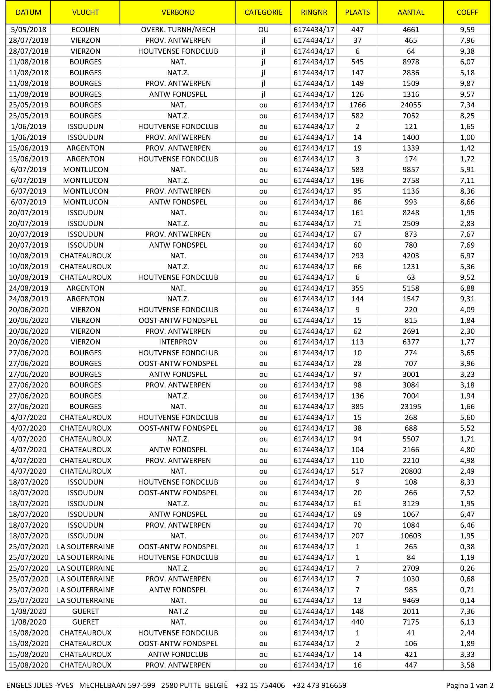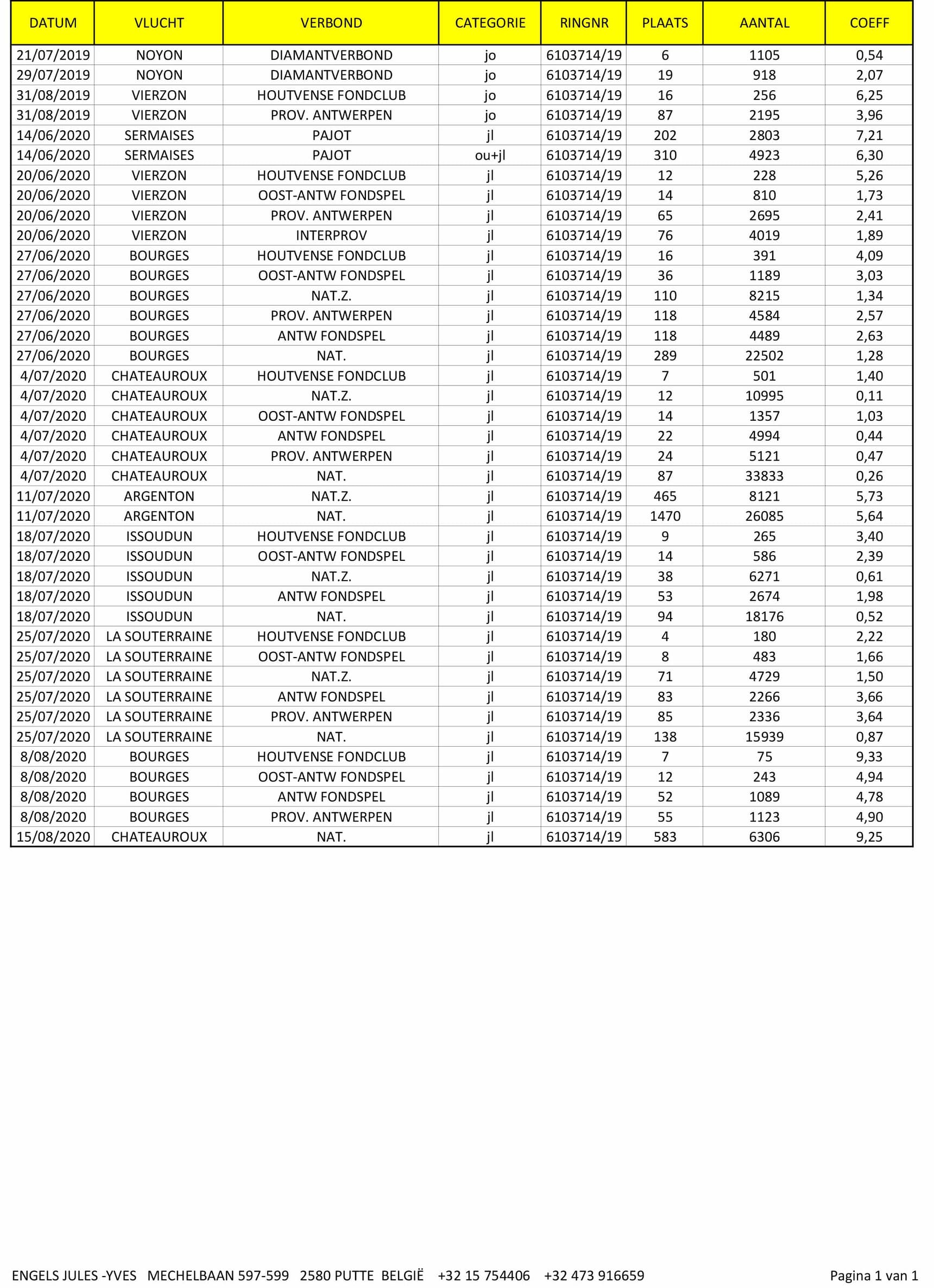 11th Best Year bird Belgium National Race 7 prizes with BE19-6103714