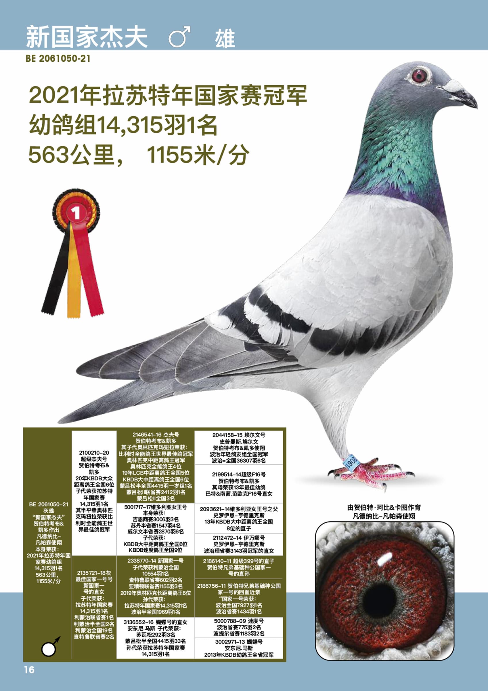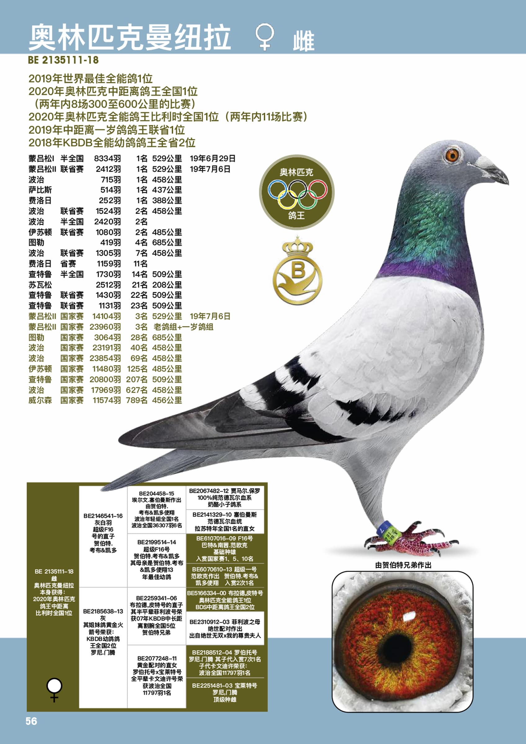 Won 14 Prov St. Soupplets against 6,758 young pigeons bred from a granddaughter “Geof”