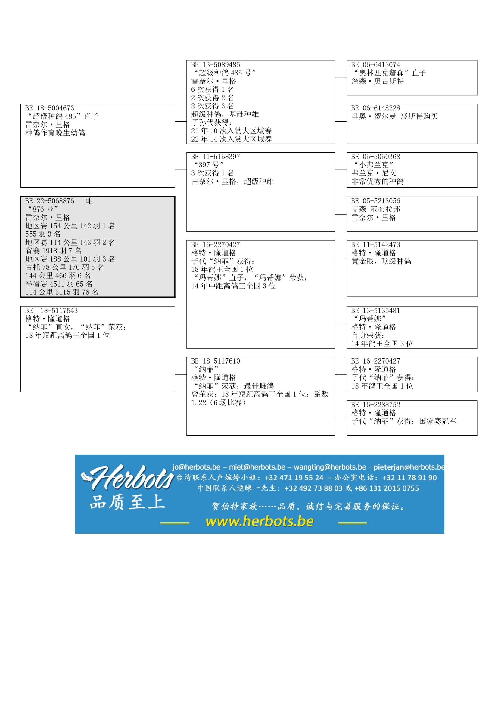 奇梅地区赛老鸽949羽比赛获得:1-4-6-7-8-12-13-21名