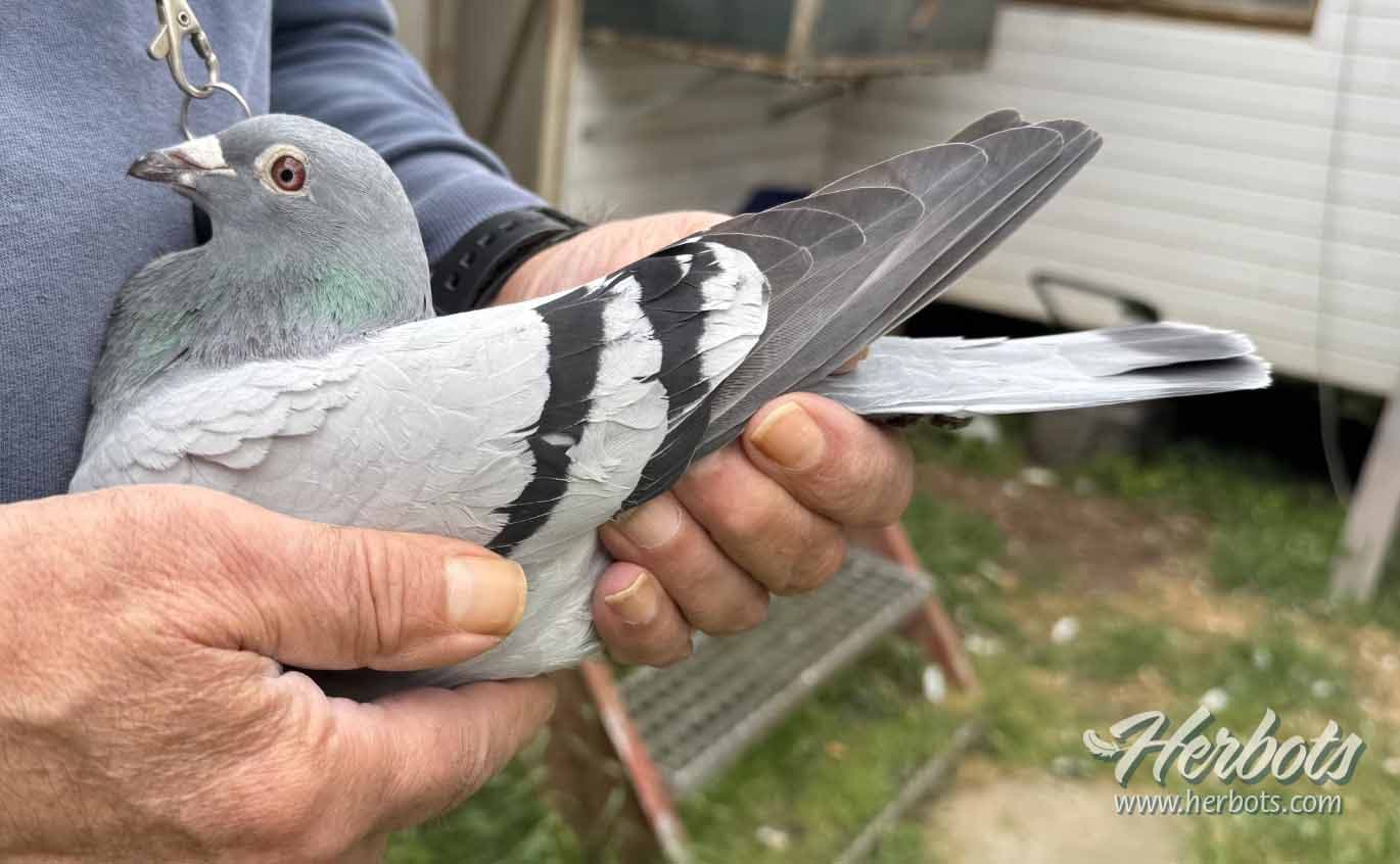 @Daughter of “782/17” Blue grandson of base breeder “Gert” x “334/16” Blue white feather – Bert Van Den Berghe