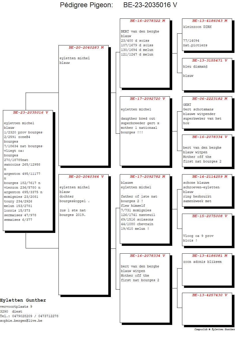 Son of “322/16” Blue Bert Van den Berghe x “720/17” ½ sister of 1st Nat Gueret and 1st Nat Bourges