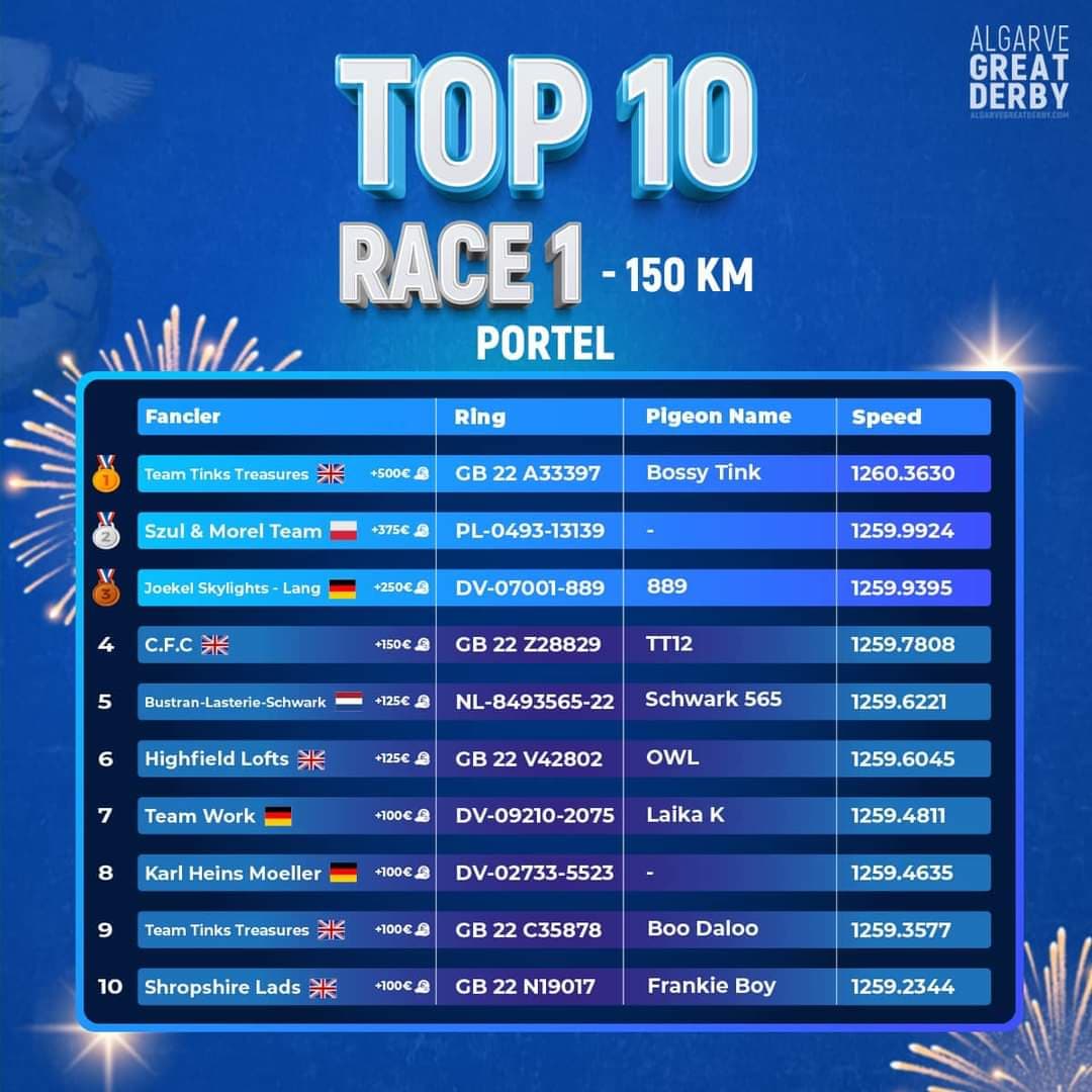 Below results from Federation where race more than 100 fanciers and 5000 pigeons: