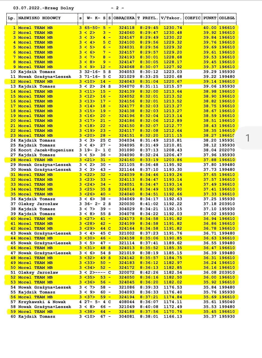 28,30,35,36,38,39,41,42,44,45,53,54,55,78,80,81,82,83,84,85,87,88,93,95 ... etc: with 481 pigeons from 196 km