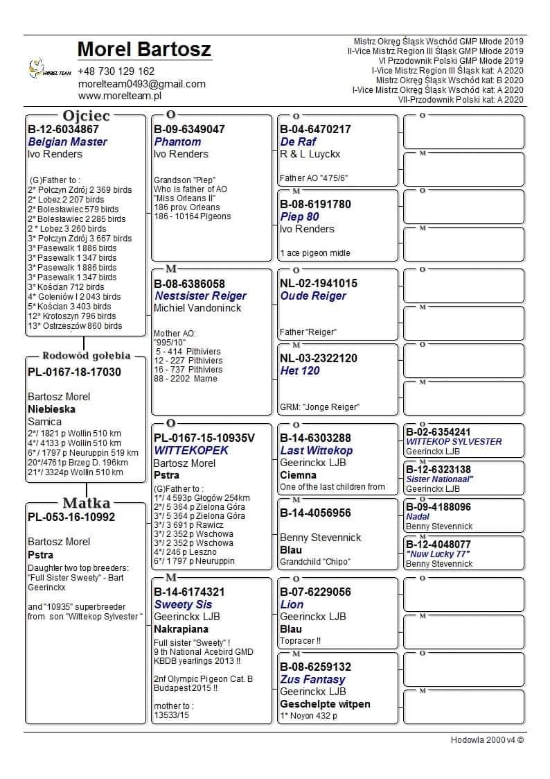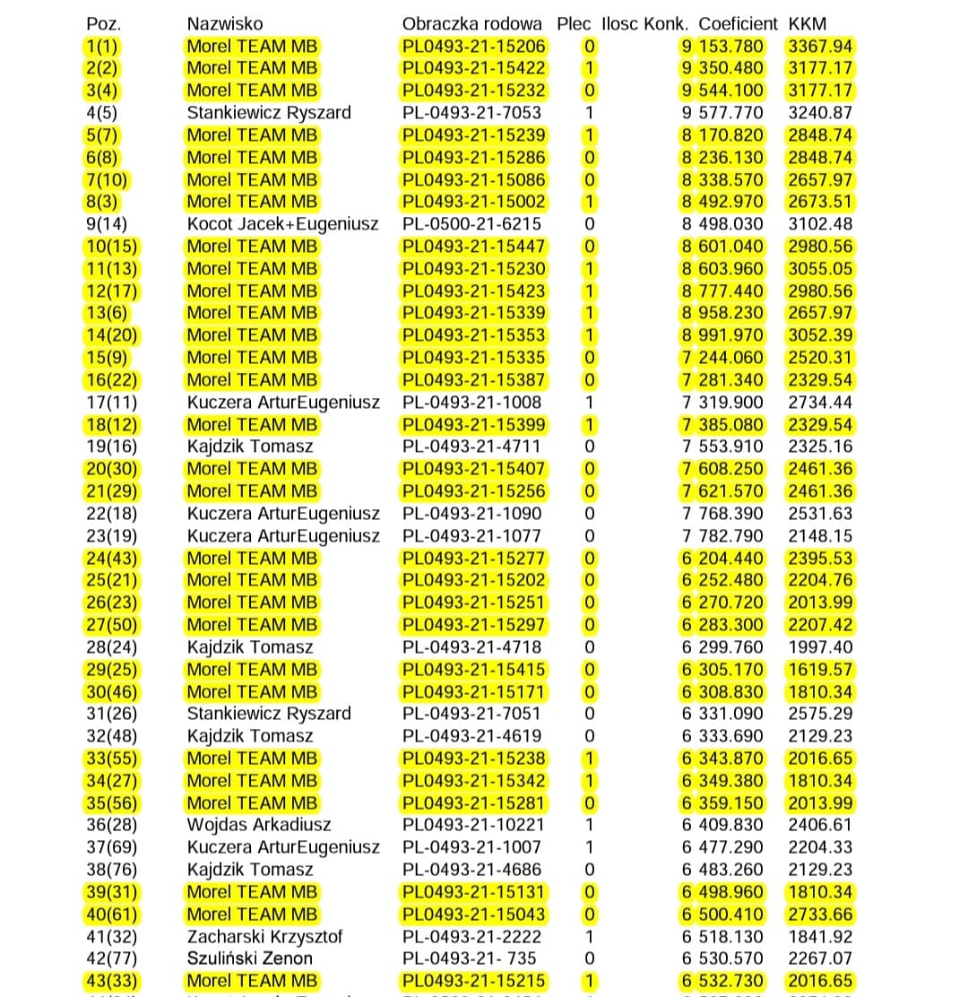 1st Champion from 9 Provincional races from 300km to 800 km ! For Morel Team Loft - Poland