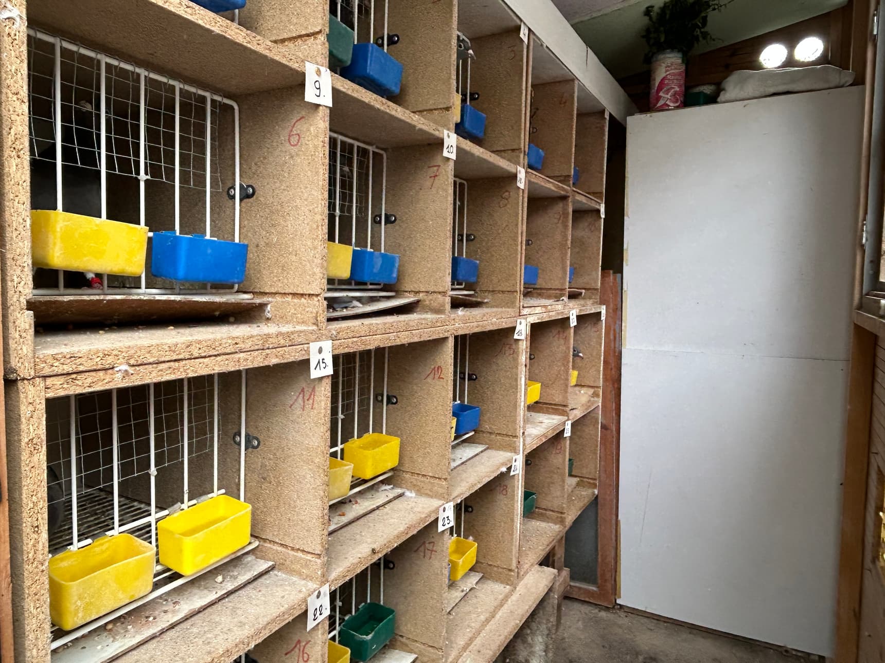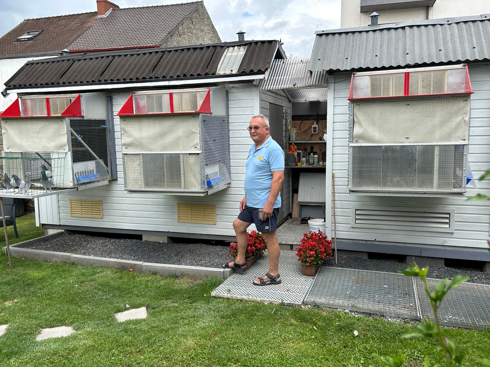 The installations consist of small, custom-built lofts, narrow due to the limited lawn space. Each compartment houses only a few birds, with many empty perches. Selection is strict—only the very best are kept each year, based solely on performance in speed races.