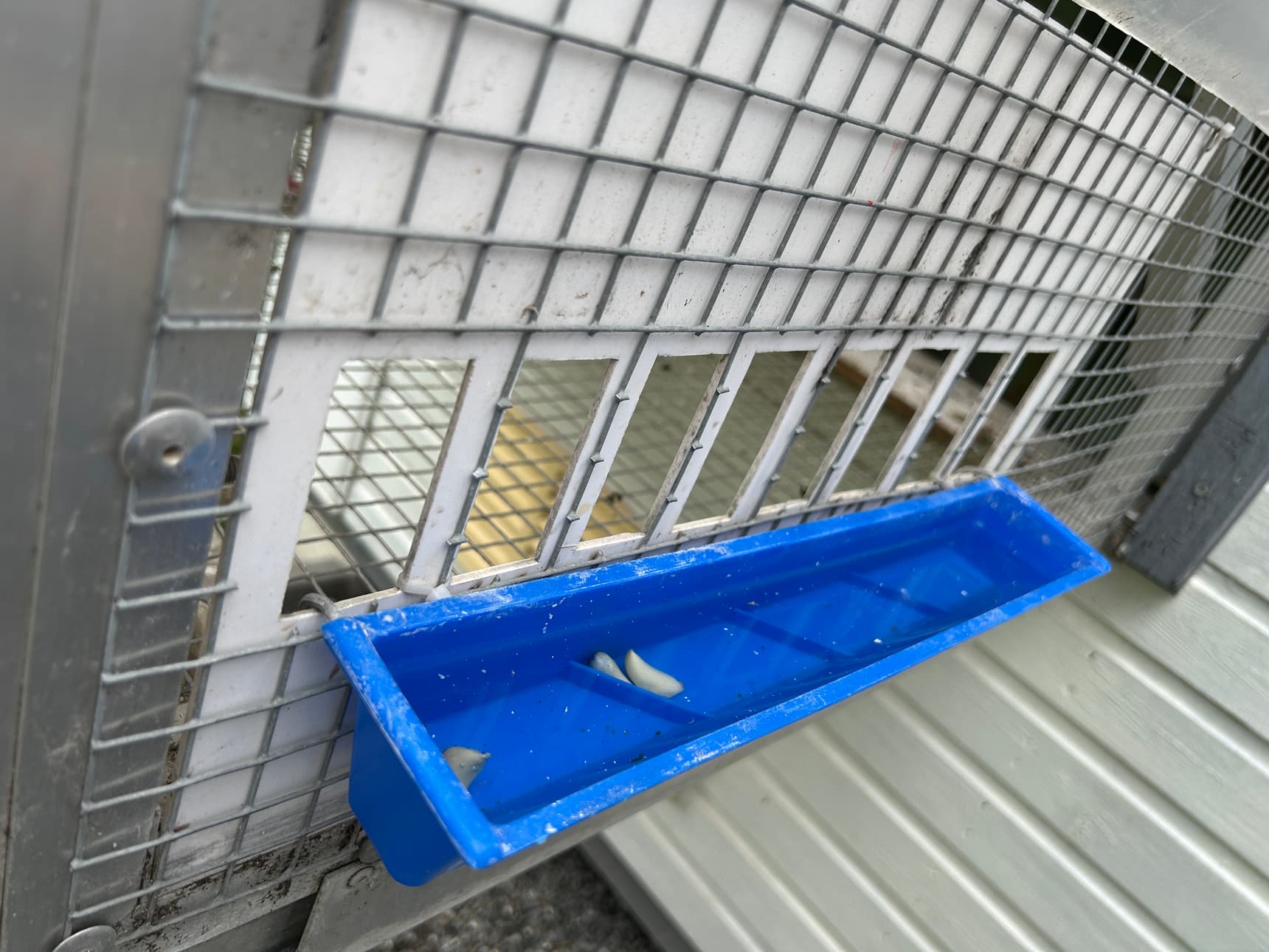 Throughout the year, garlic cloves are permanently placed in all drinking water containers. Vitamins are given occasionally, but not regularly. Pierre prefers to rotate them rather than use the same brand consistently. One week he might use Multivitamin Gold (Giantel), and the next Animovit (Herbots).