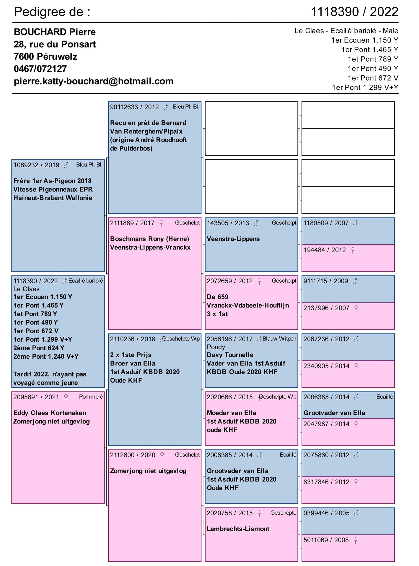 Racing Record of Pigeon 1118390/22 “Le Claes”
