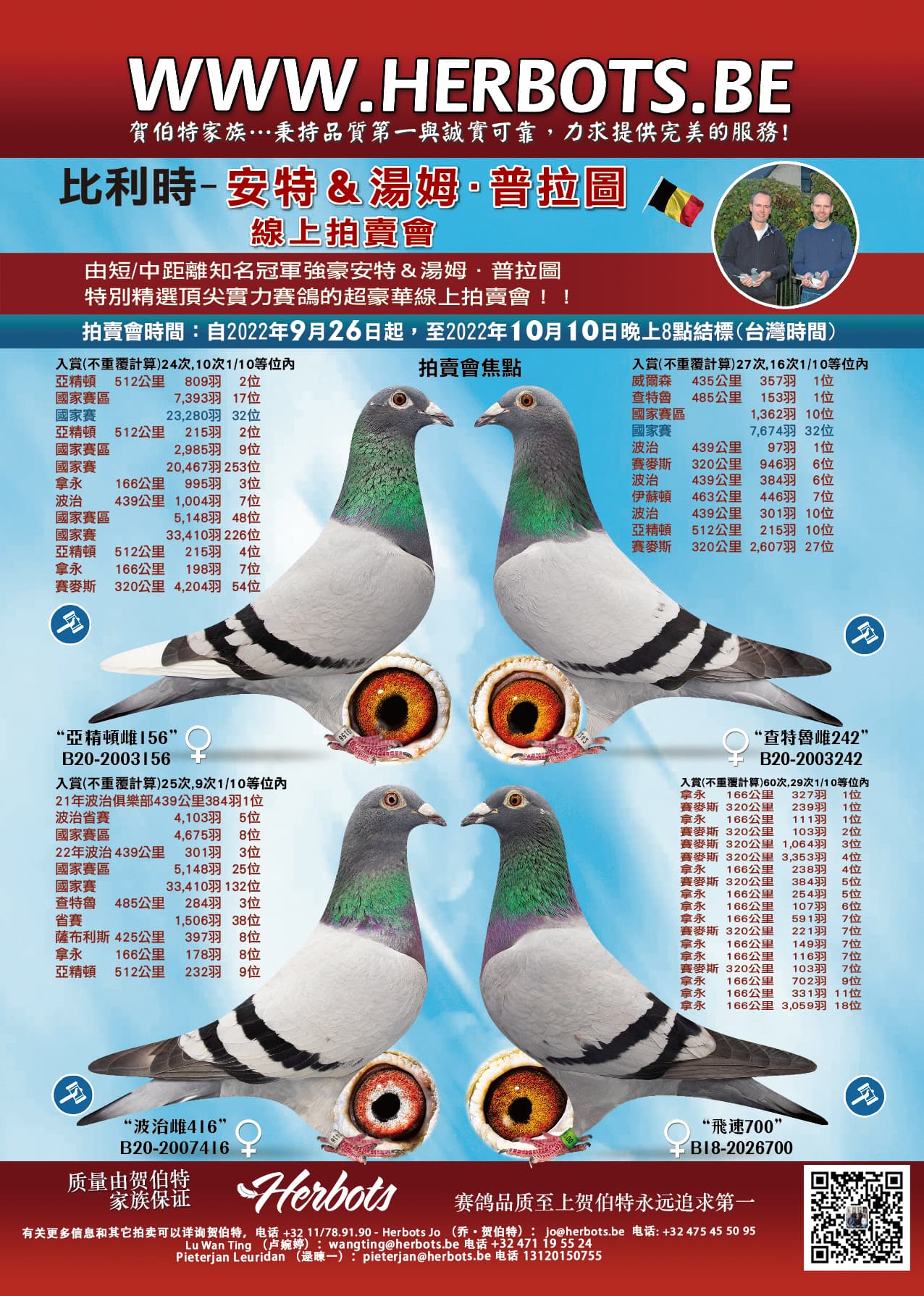 The many references proof that the pigeons from Ante and Tom have good genes. Pigeons that are being pushed to the limit by these two passionate fanciers with marvellous result as consequence. And as mentioned before…they don’t like paper pigeons, pigeons with pedigrees are less important. They only look at the result. This is why they are an asset to each loft as they have the qualities to deliver top results from Quièvrain to Argenton.