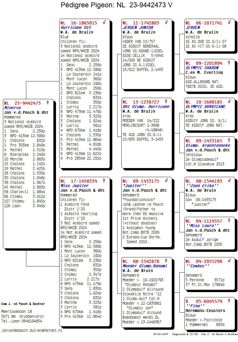 Son of “803/11” Jeroen Junior x “727/13” Daughter Olympic Hurricane x Olympic Argentonneke and joint breeding between Jan Van de Pasch and Willem De Bruijn