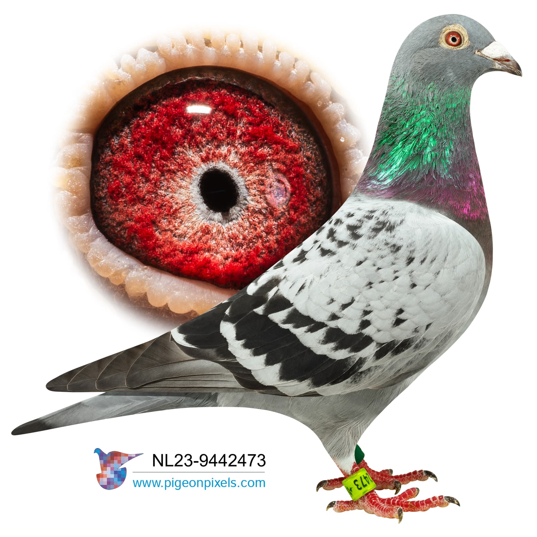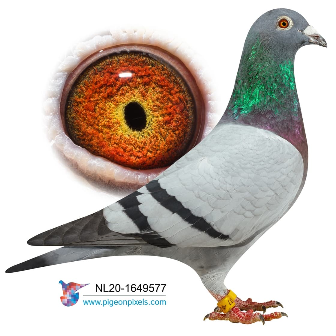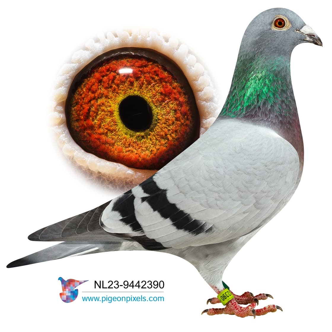 The ace pigeon “NL 21-1342212” No Limit is a daughter of 2 children who come further from their 2 best breeding lines of their colony. This is the super breeder "Jupiter" coupled to "Mother Olympic Ranomi" who were then crossed with the "Olympic Hurricane" line of Willem De Bruijn.