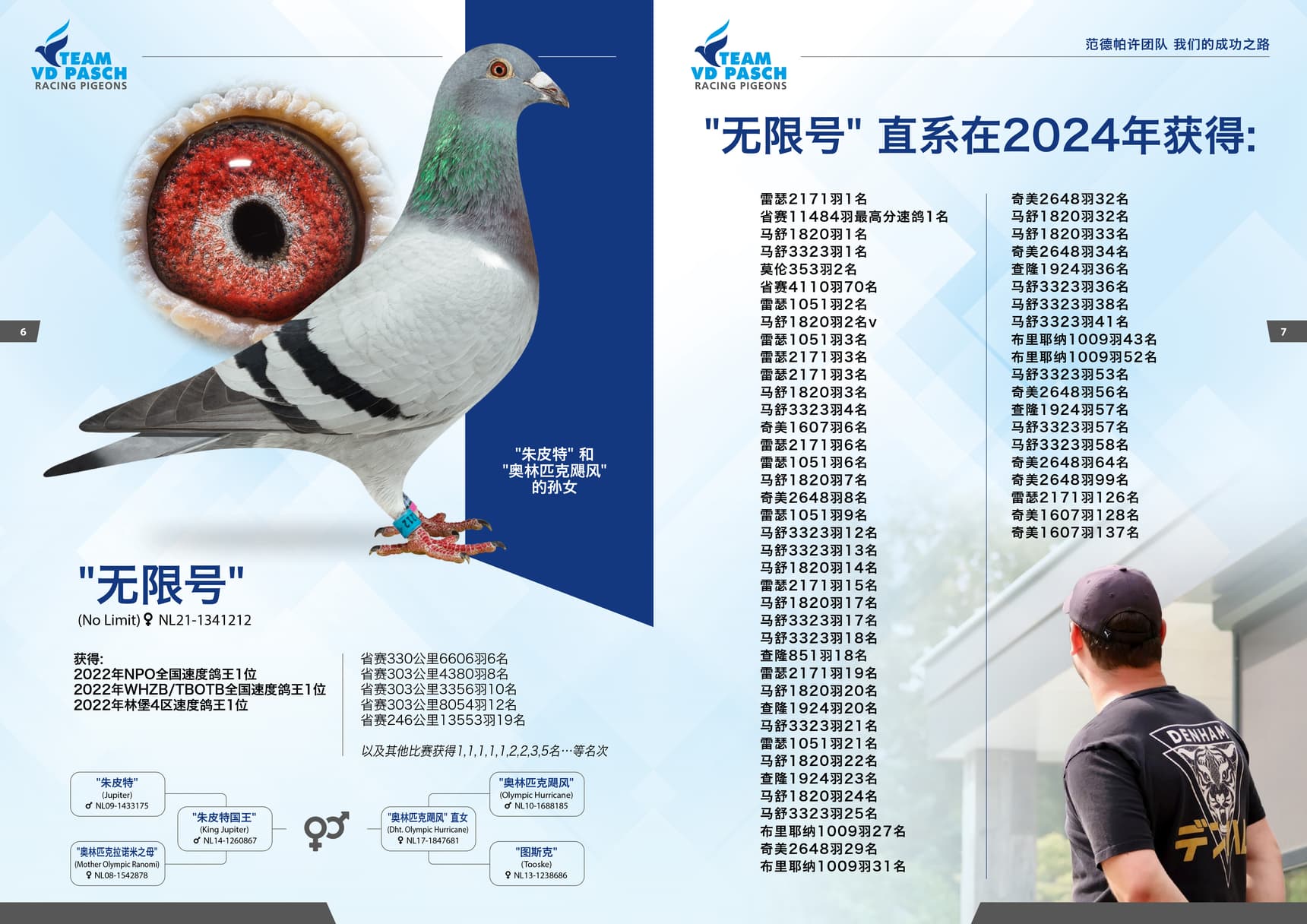 The 2nd reference comes from Mr. Wang Chengjian (Youxiang Loft), his pigeon won the 5th prize in the final flight of Great Wall OLR. Over a distance of 500 km. 3,652 pigeons took part. The mother of this top pigeon is NL 22-8594406 “Murphy’s Law 406”, she became 7th National Ace Pigeon Yearlings “De Allerbeste” in 2023 at Team Van de Pasch in Grubbenvorst.