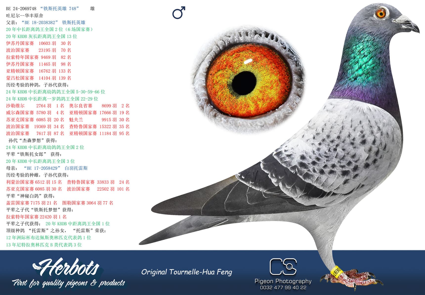 An inbred product of “Tiesto Fantasy” BE 11-2077362 (Son of stock father Tiesto) and stock father Tiësto is currently the 1st ace pigeon over 3 races of more than 500km in the Xi'an Glory Pigeon Club China.
