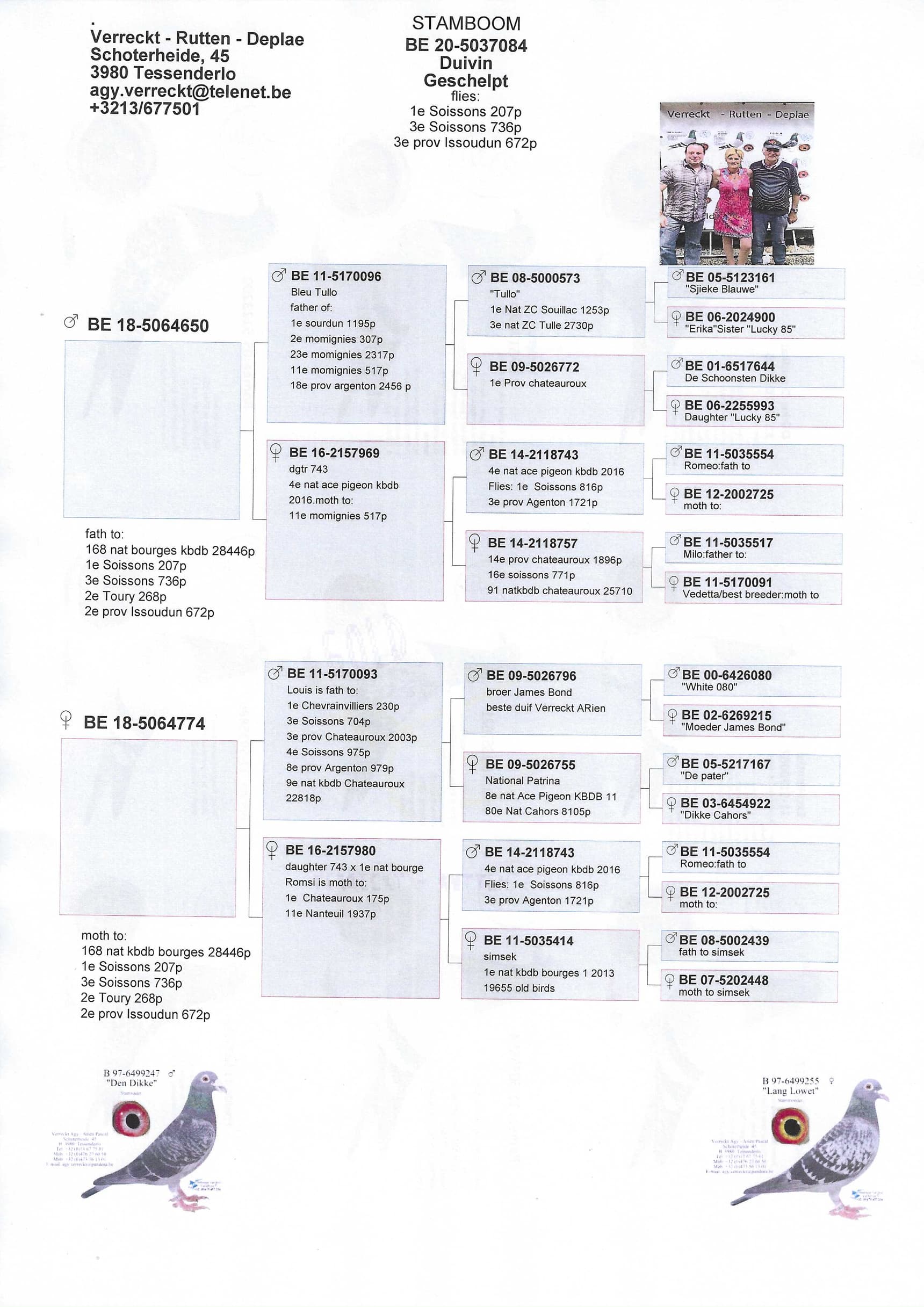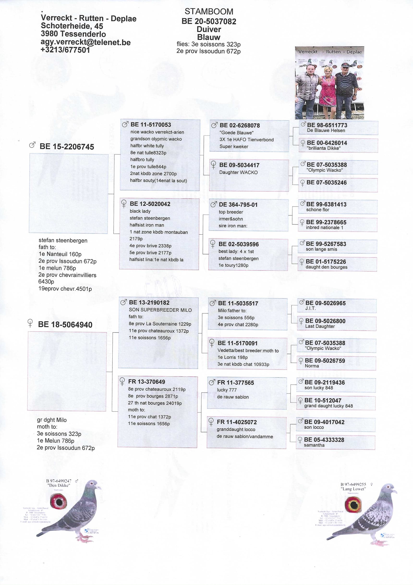 In Tessenderlo, the Verreckt – Rutten – Deplae trio hit the mark on Argenton, against the wind and masses they clocked a yearling cock who flew far ahead in the provincial competition and achieved 8th place nationally against 20,443 yearlings. Once again proof of their rock-solid foundation that they can build on. In the next national race from Issoudun they won silver and bronze with the old birds and 2 x top 10 provincial with the yearlings. Their racing team is in order, that much is certain. Their counter of provincial victories under this name is currently at 9, but in this condition there will certainly be something more.