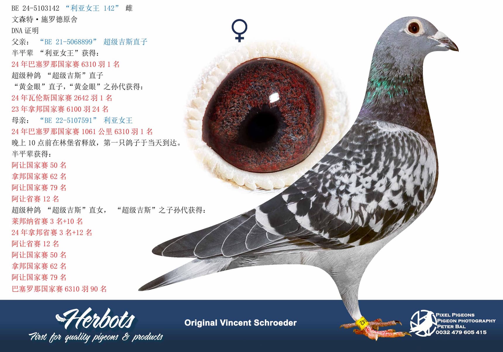 vincent schroeder (schalkhoven) 1st nationaal barcelona 6.310 old birds