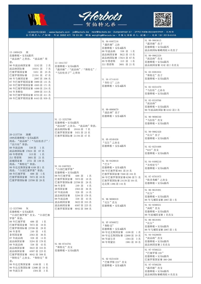 作育者: 100% VAN DER WEGEN A. & L. 100% 纯范德维根血系