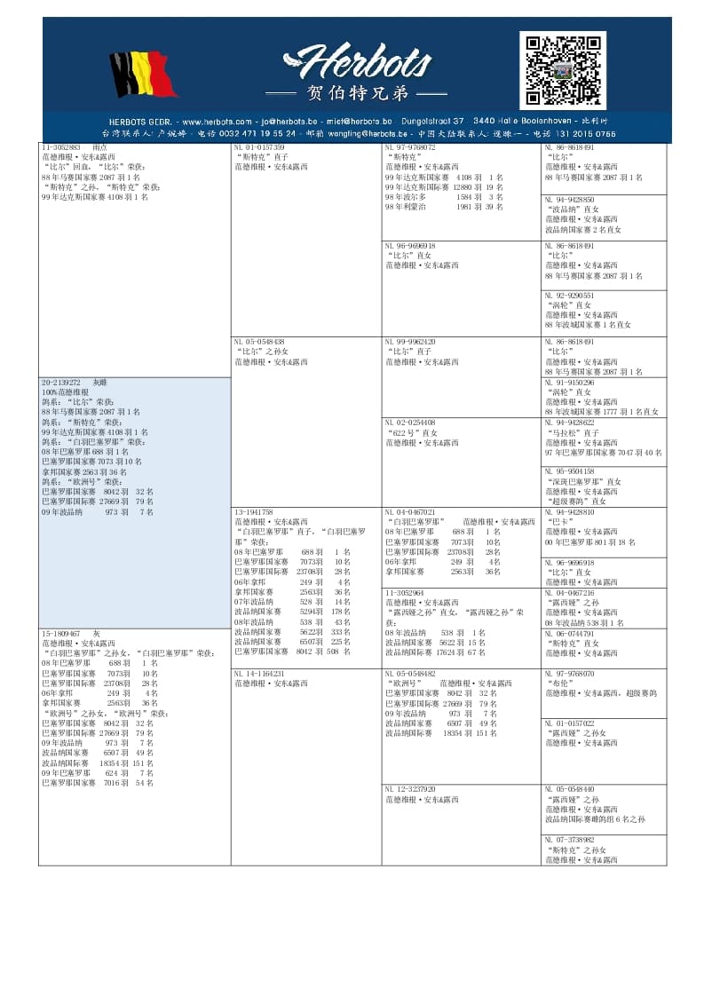 作育者: 100% VAN DER WEGEN A. & L. 100% 纯范德维根血系