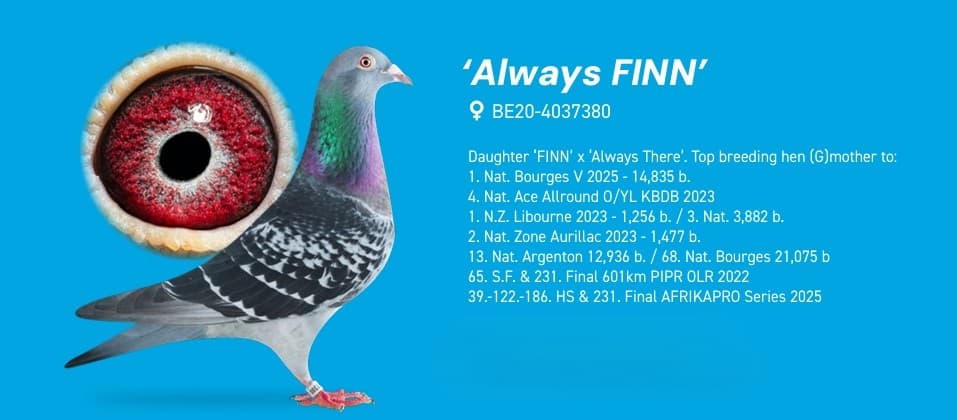 “芬尼”的子代荣获: 20年KBDB中长距离幼鸽鸽王