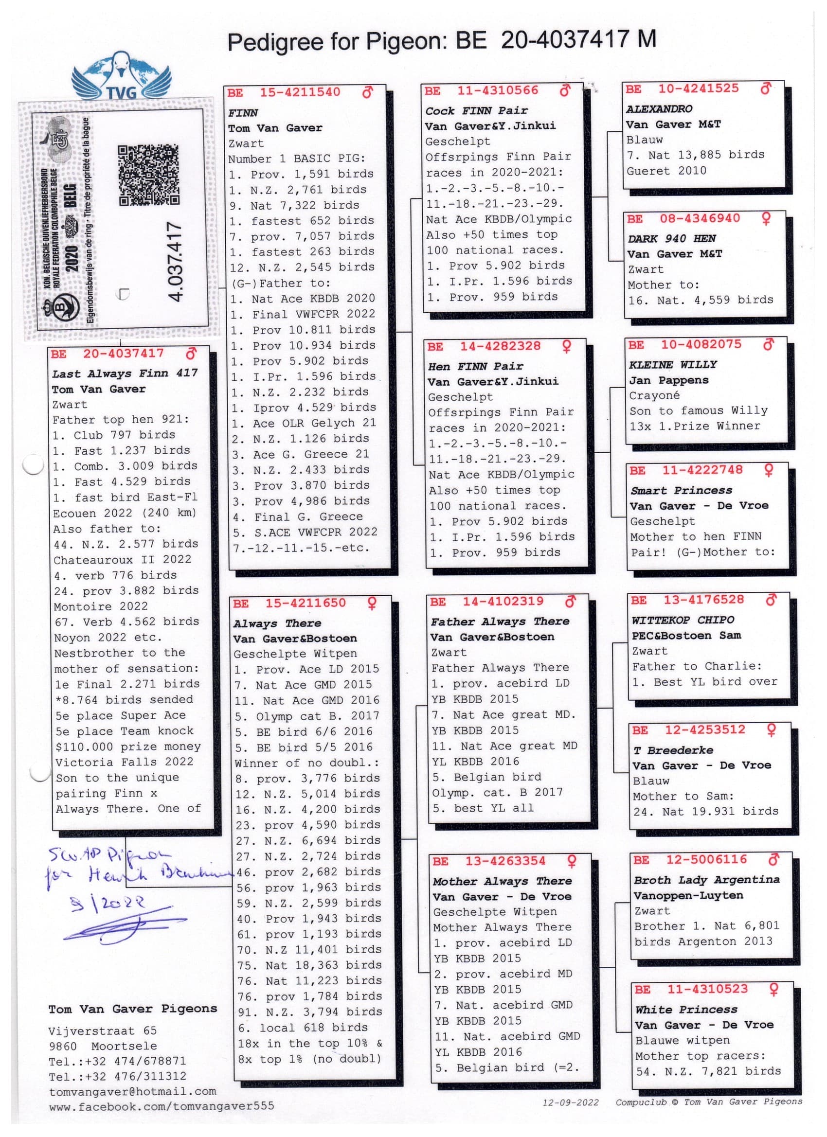 子代荣获: 唐格伦 2.417羽4名 – 博克斯梅尔
