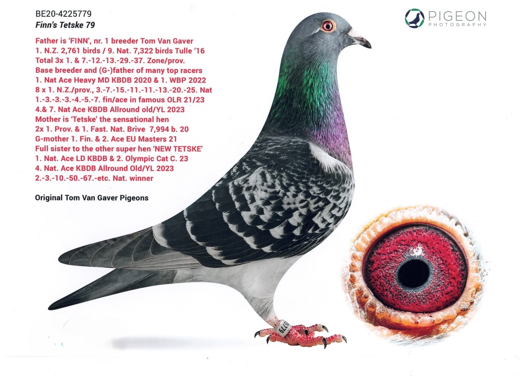 “芬尼”是1号基础鸽,荣获 : 图勒国家赛 7.322羽9名