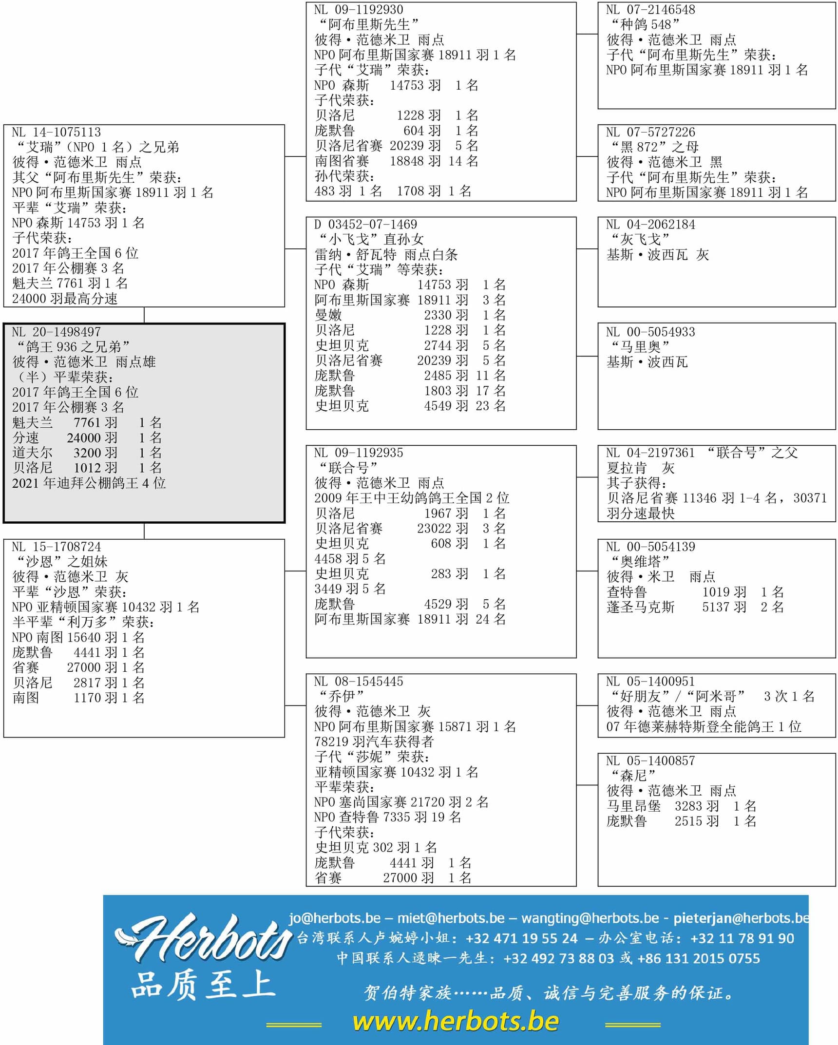 “联合号” (“王中王”幼鸽鸽王全国2位 – 贝洛尼 1,967羽1名 – 贝洛尼 23,022羽3名 – 阿布里斯国家赛 18,911羽24名) x “乔伊” (NPO 阿布里斯国家赛 15,871羽1名 + 汽车获得者) 直女