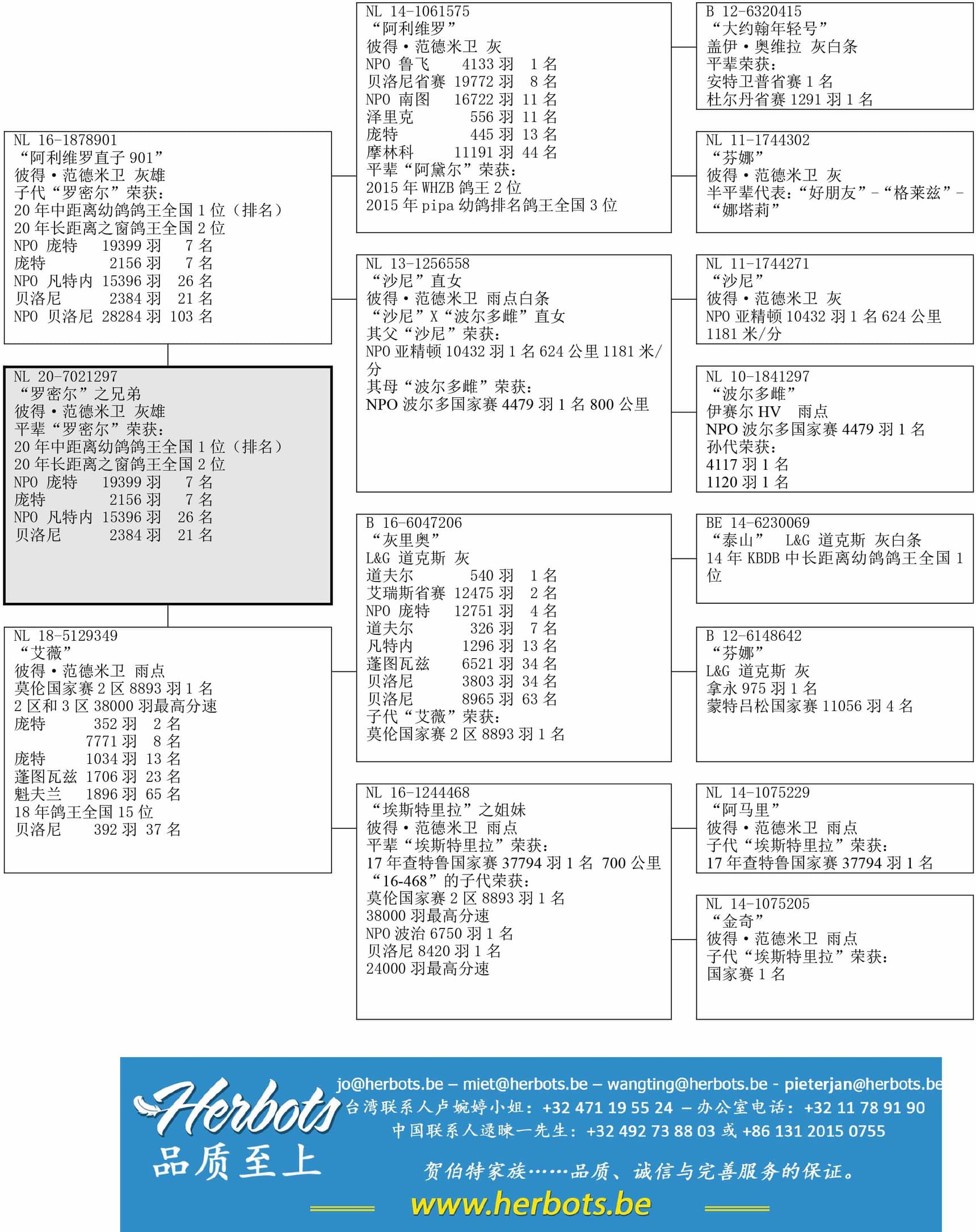 荣获:莫伦国家赛 8,893羽1名 – 38,000羽分速最高 - 庞特 7,711羽8名 – 18年鸽王全国15位