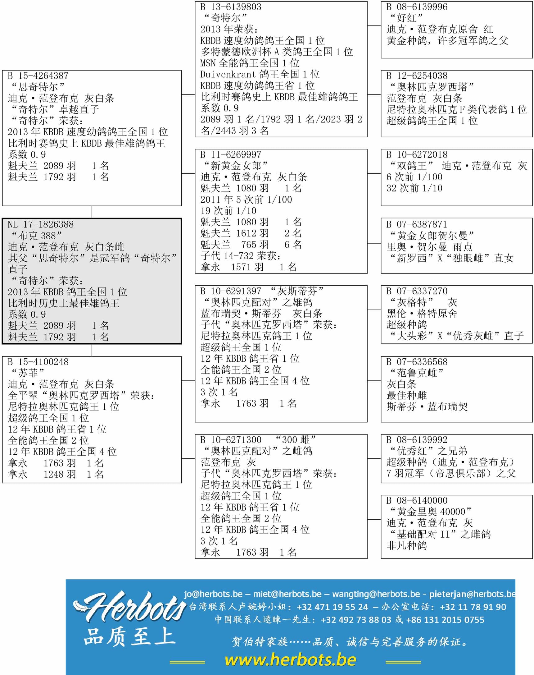 2012年KBDB速度鸽王全国4位;许多著名鸽之母,如:“奇特尔”, “新奇特尔”, “格雷佩尔”,…
