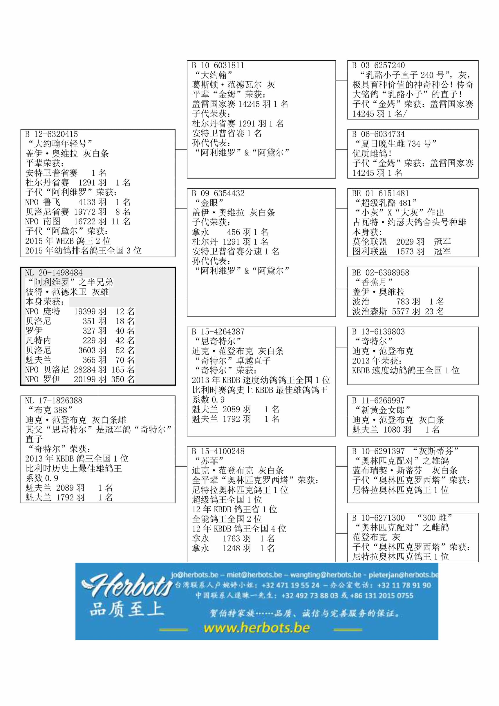 “阿利维罗”的子代荣获: WHZB鸽王全国2位以及鸽王全国3位(排名)