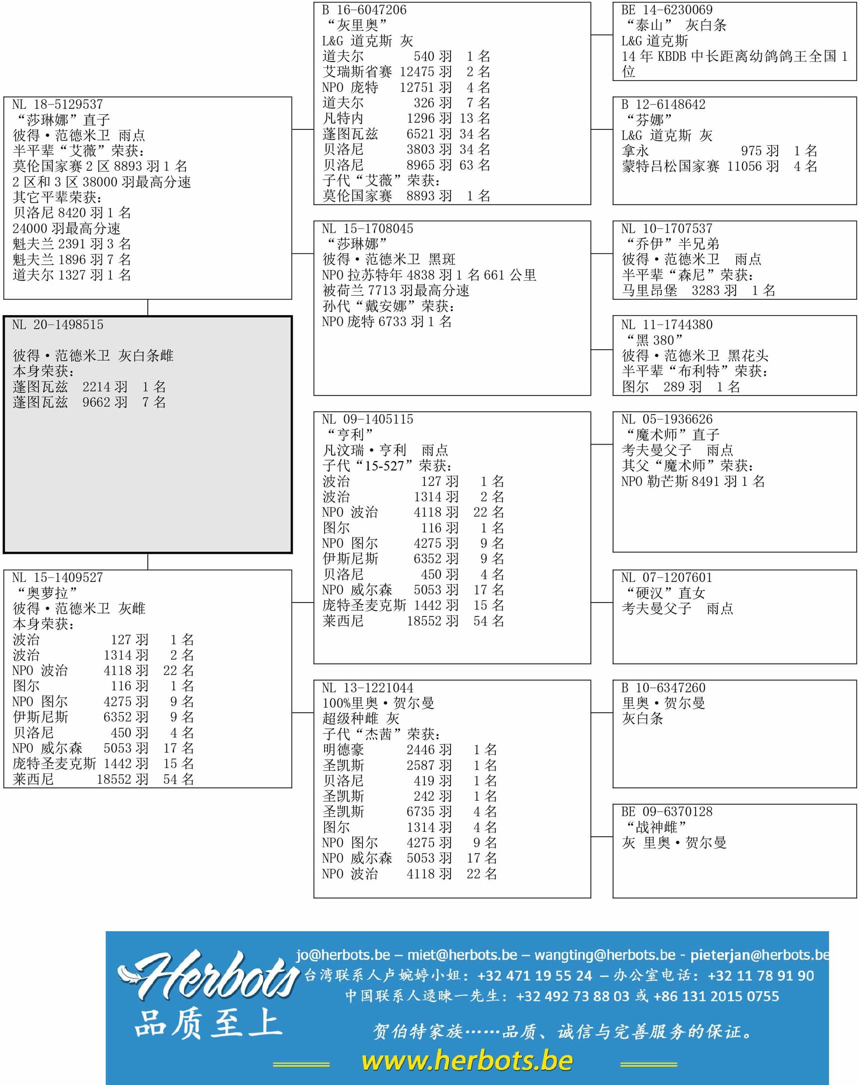 半平辈代表:“艾薇” (莫伦国家赛 8,893羽1名 – 38,000羽分速最高) 以及 : 贝洛尼24,000羽分速最高 – 道夫尔 1,327羽1名 – 魁夫兰 2,391羽3名 - 魁夫兰 1,896羽7名)