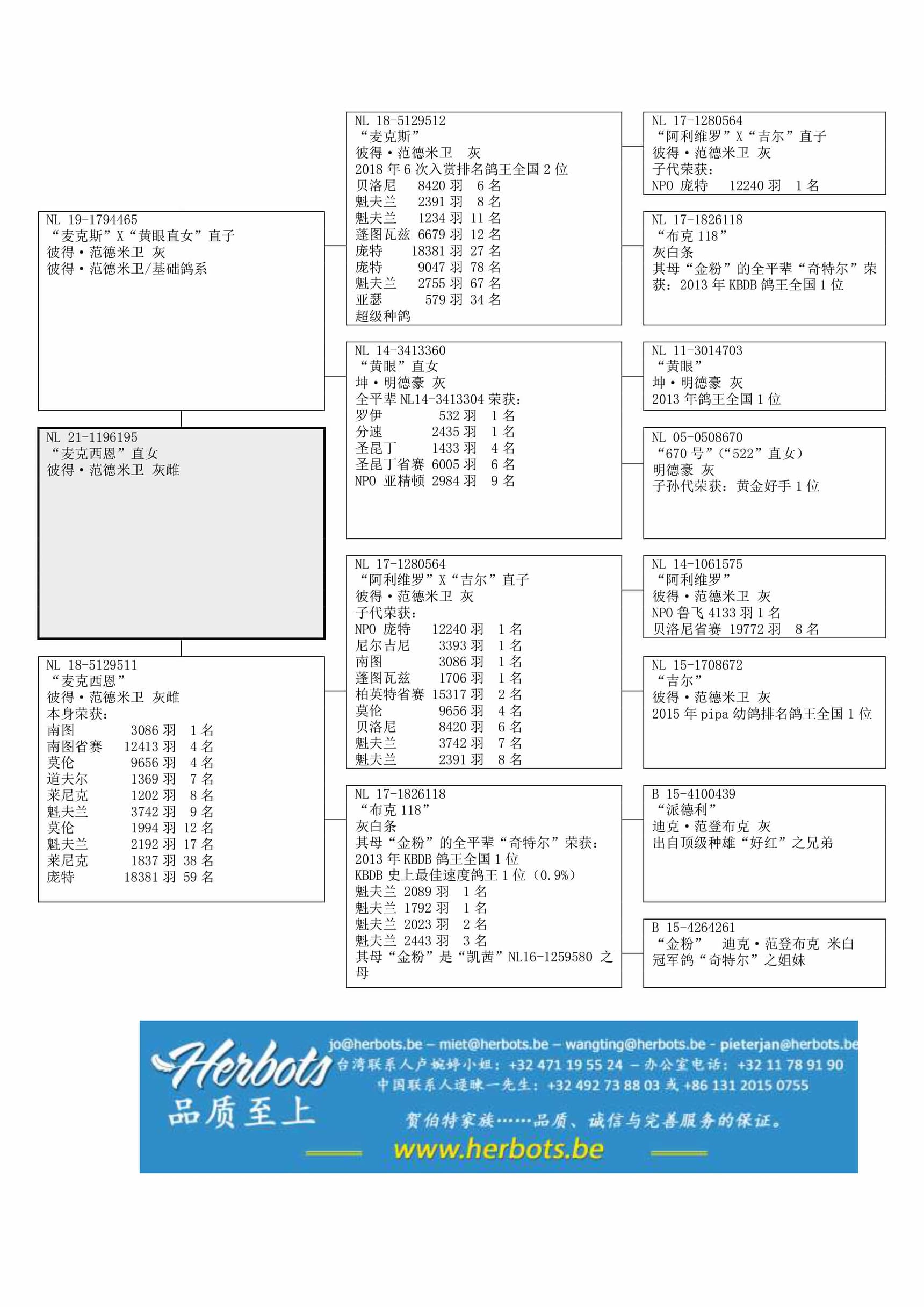 “麦克斯” (6次入赏鸽王全国2位) x“黄眼直女” (“黄眼” 荣获:西欧国家杯鸽王全国1位 – NPO 3 次1名)作出
