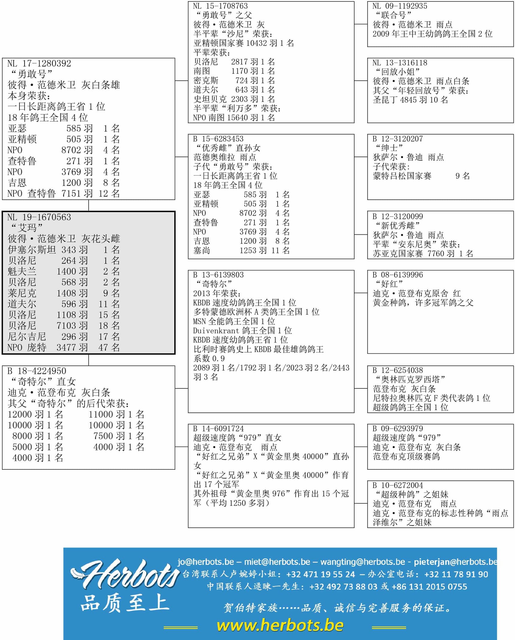 荣获: 18年一日长距离鸽王省1位/全国4位 - 亚瑟 585羽1名 – 亚精顿国家赛 8,702羽4名 – NPO查特鲁 3,769羽4名 – 查特鲁国家赛 7,151羽12名