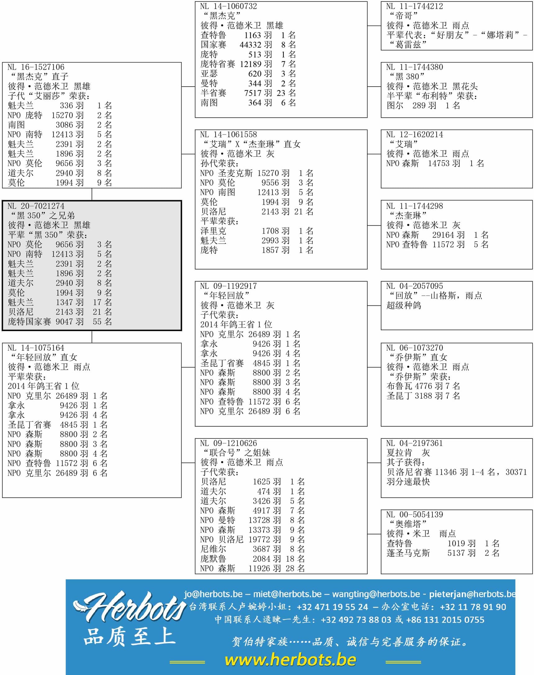“黑杰克” (“黑杰克” 荣获:庞特省赛 12,189羽7名 - 查特鲁国家赛 44,332羽8名) x “NL14-1061558” (出自“艾瑞” (NPO 森斯14,753羽1名) x “杰奎琳” (NPO 森斯 29,164羽1名)) 直子