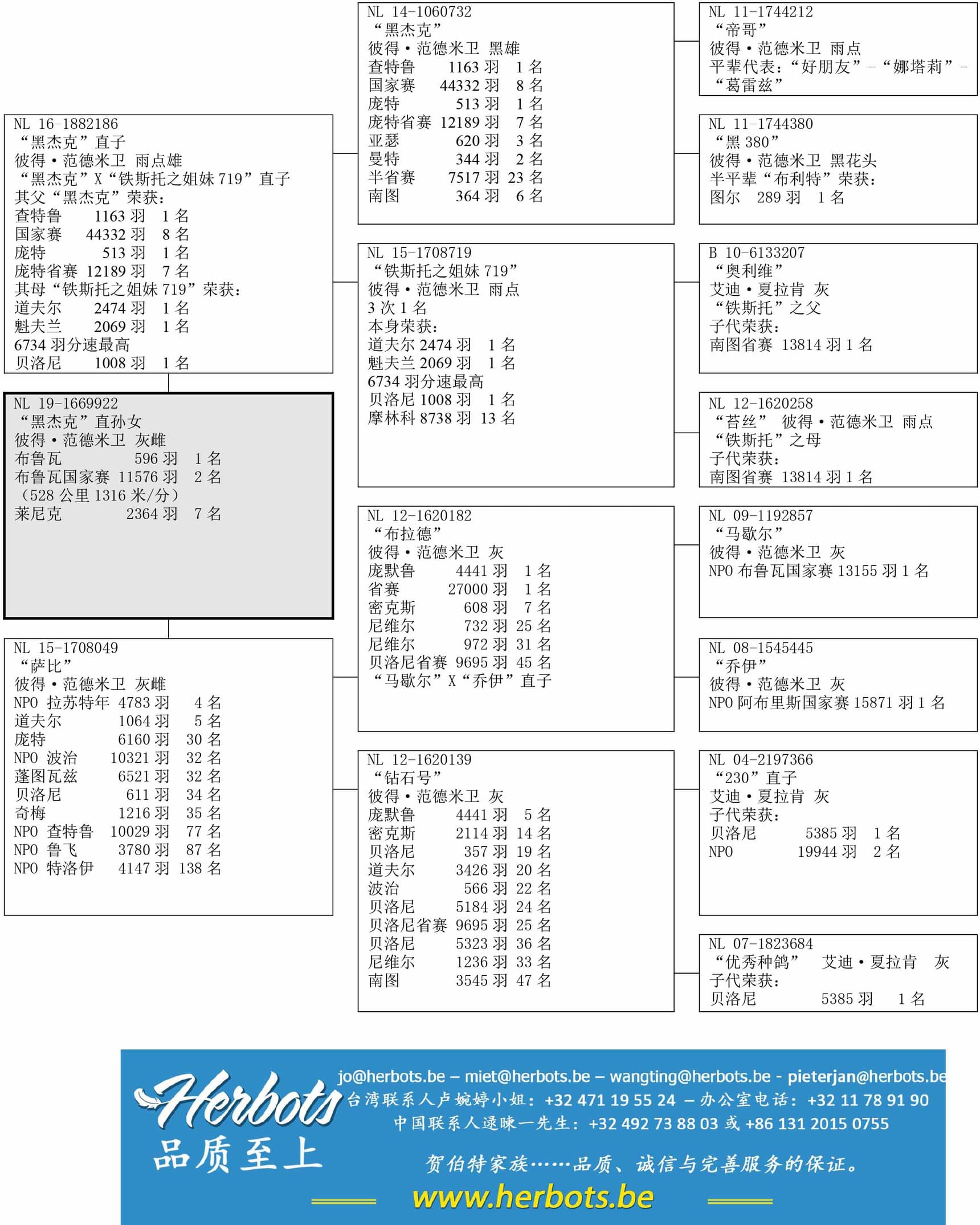 “黑杰克” (“黑杰克” 荣获:庞特省赛 12,189羽7名 - 查特鲁国家赛 44,332羽8名) x “铁斯托之姐妹” (荣获:道夫尔 2,474羽1名 - 魁夫兰 6,734羽分速最高 – 贝洛尼 1,008羽1名) 作出
