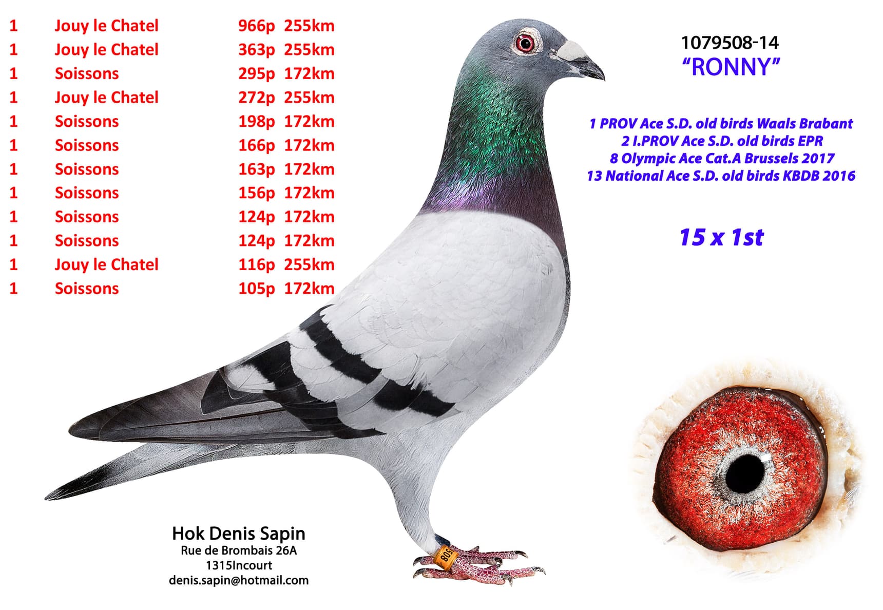 17年布鲁塞尔奥林匹克短距离代表鸽鸽王8位