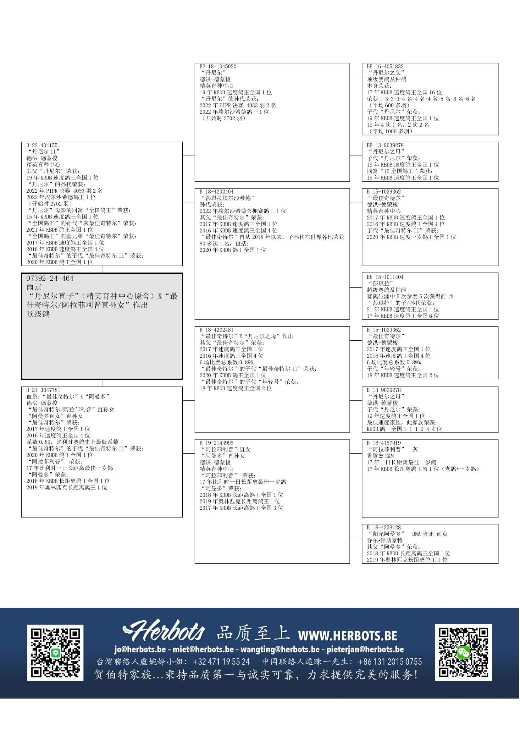 “最佳奇特尔”(鸽王全国1位) x “莎琪拉” (子代荣获KBDB鸽王全国4位和6位)直女