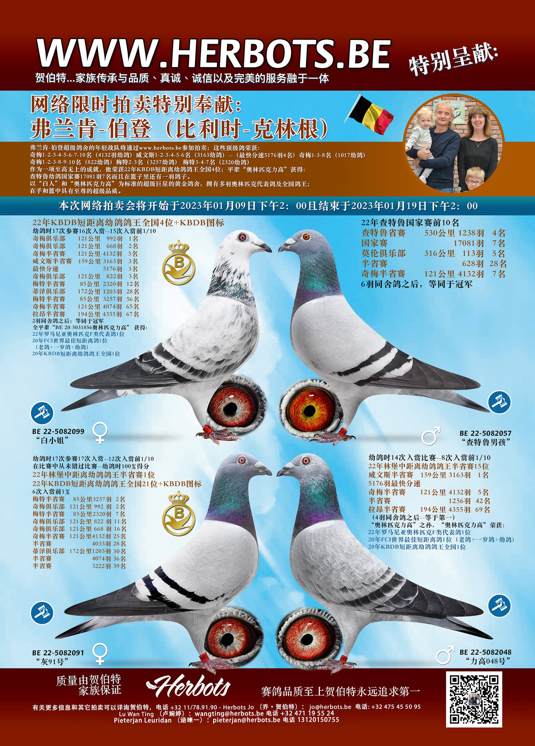 本场拍卖会提供法兰肯-贝尔登幼鸽比赛团队!