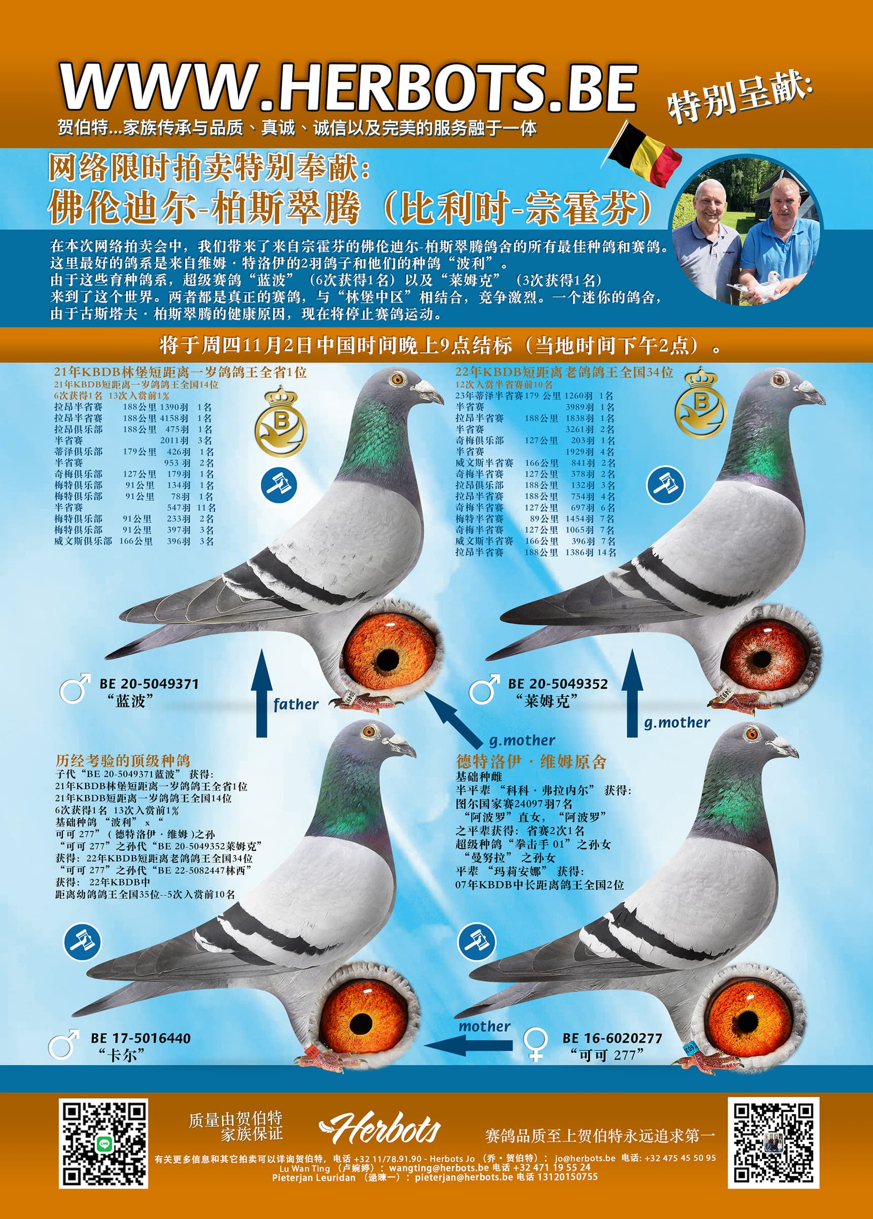 在本次网络拍卖会中,我们带来了来自宗霍芬的佛伦迪尔-柏斯翠腾鸽舍的所有最佳种鸽和赛鸽。这里最好的鸽系是来自维姆·特洛伊的2羽鸽子和他们的种鸽“波利”。