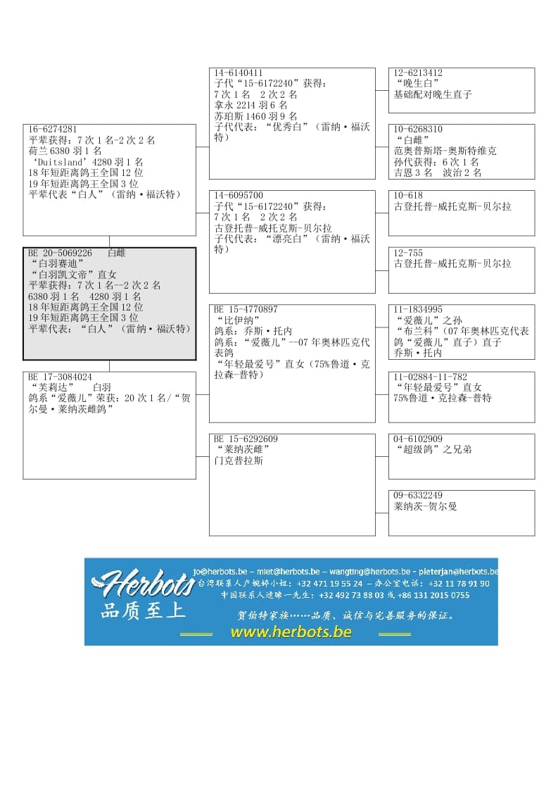 20年FCI世界最佳短距离代表鸽1位(老鸽+一岁鸽+幼鸽)