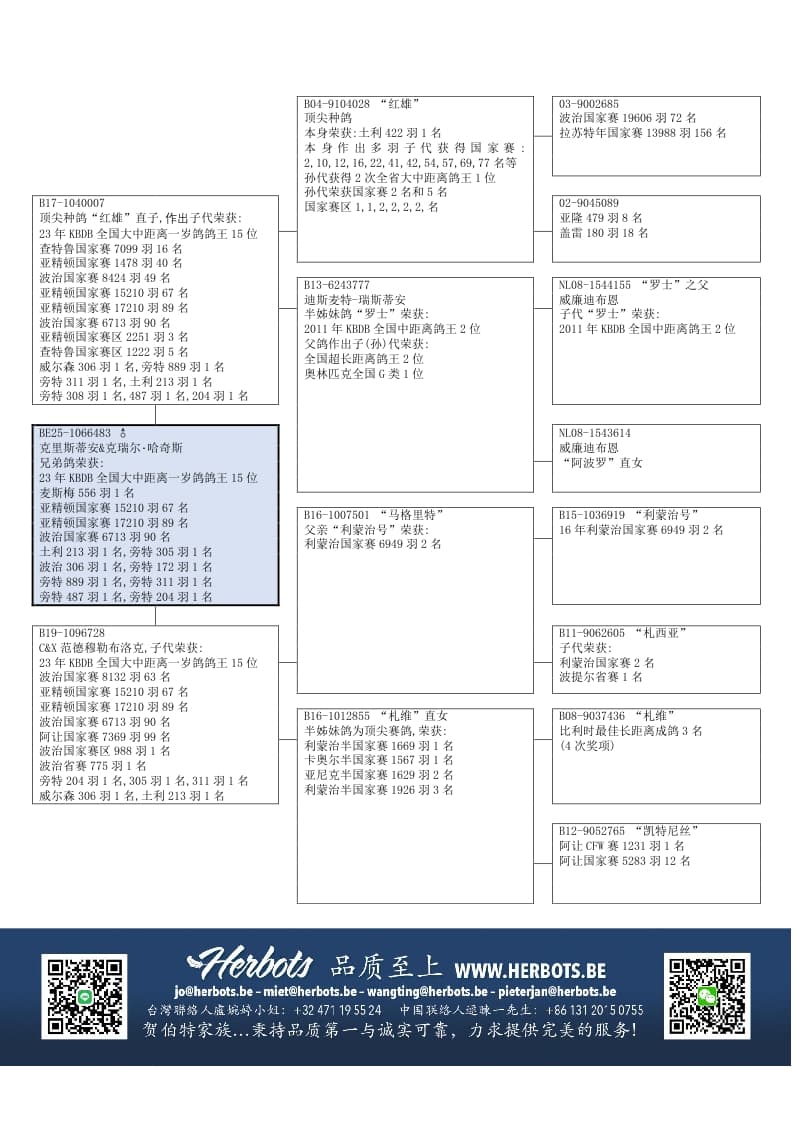 父亲 “BE 17-1040007” 顶尖种鸽作出直子
