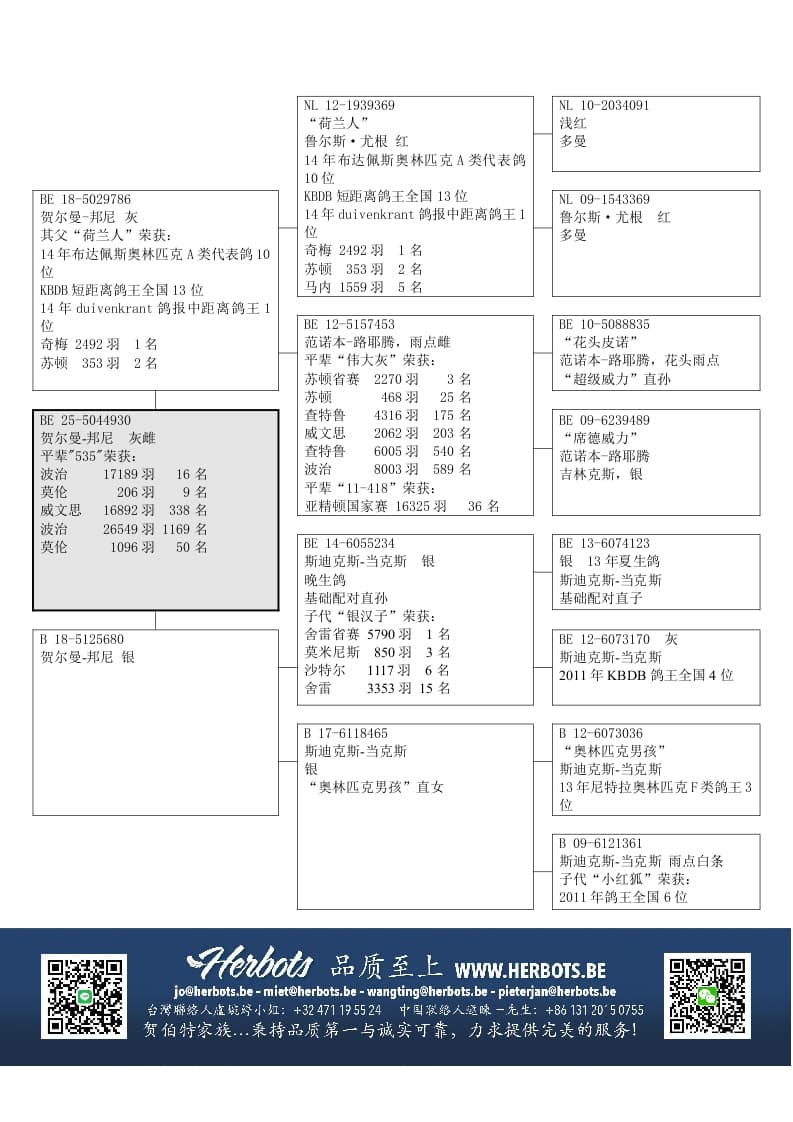 其父“荷兰人”(基础种鸽)荣获: