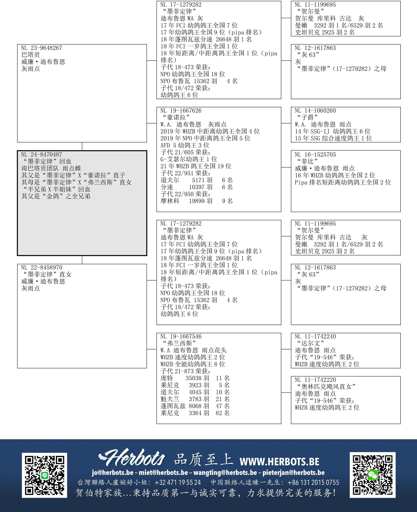 当前的基础种鸽,多代后代在各种类型的比赛中获得高位入赏