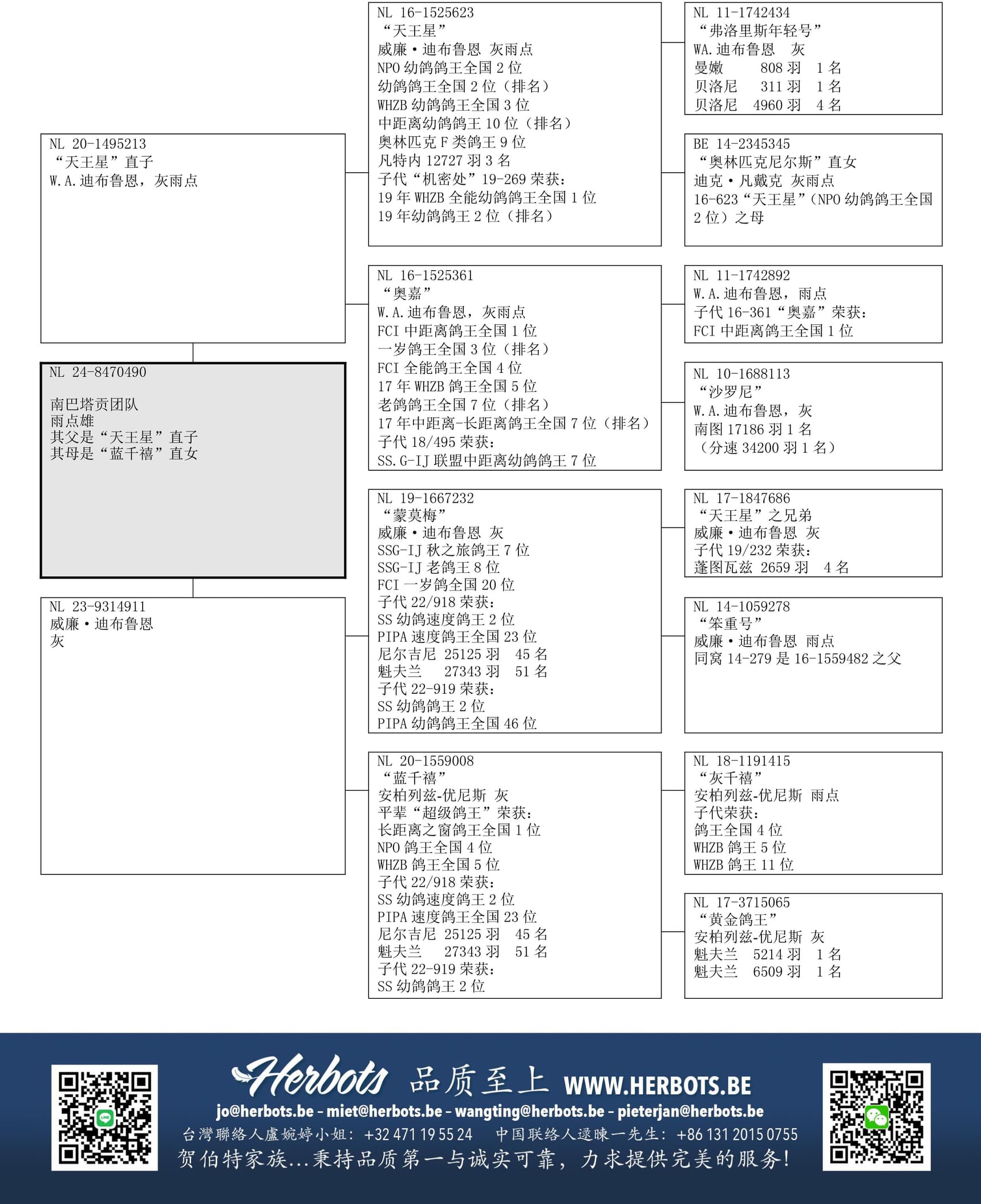 荣获: 鸽王全国1位, 3位, 4位, 5位和7位