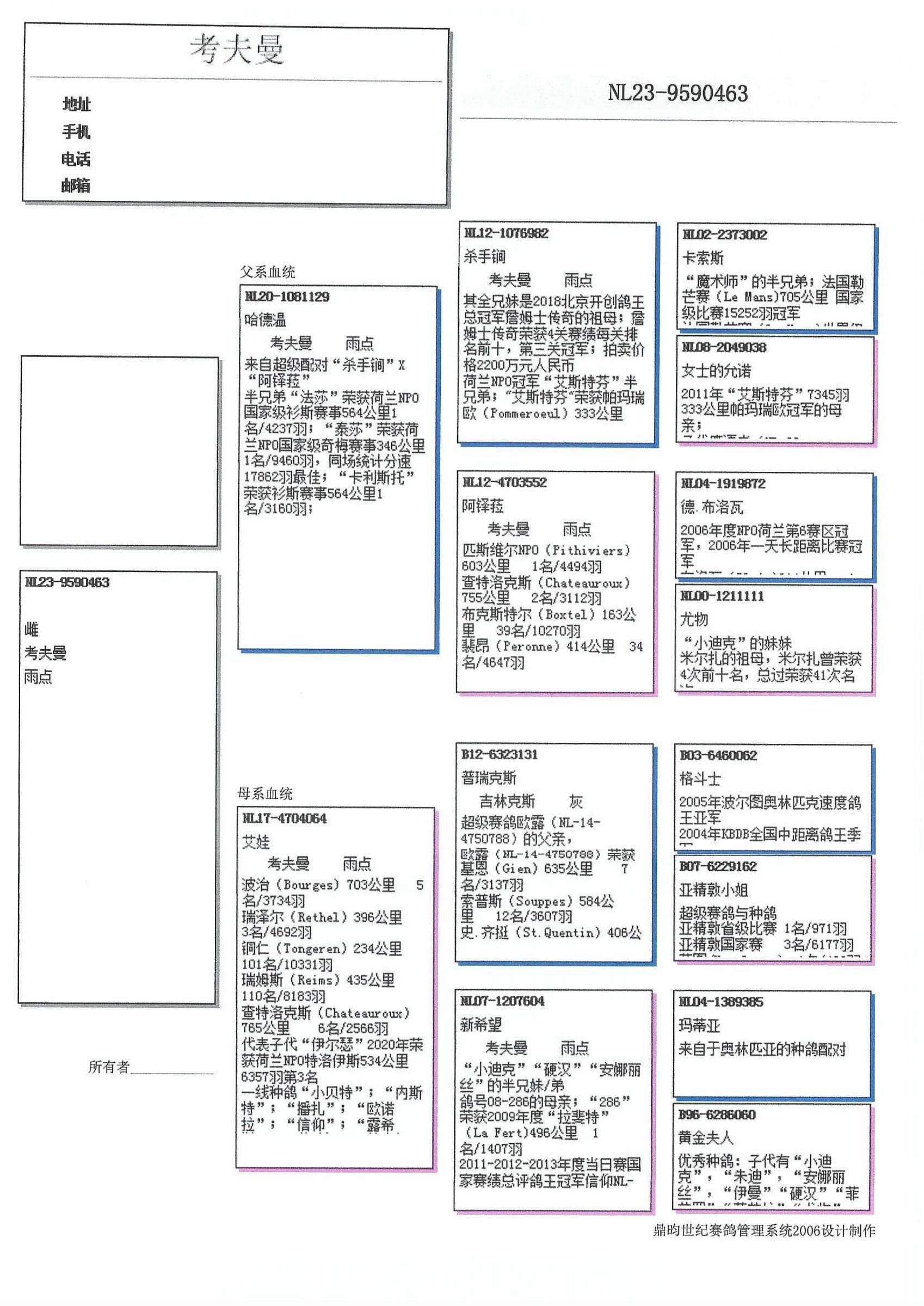 先锋俱乐部鸽王1位 – 2,78 百万欧元售出 之平辈直孙