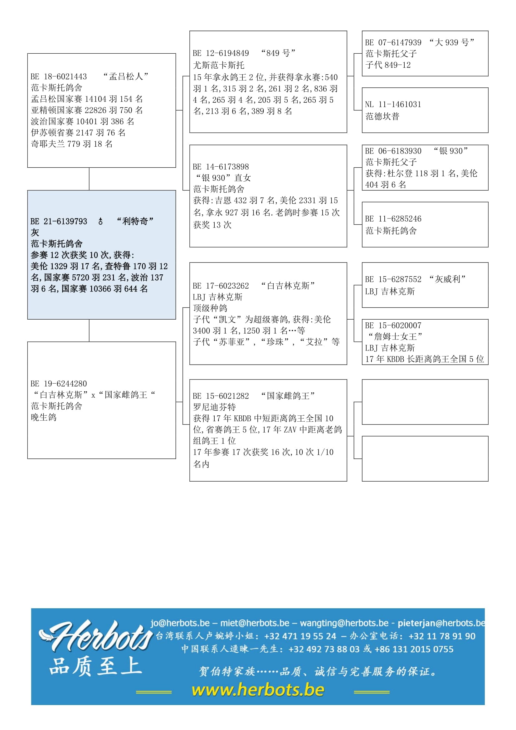 荣获: 查特鲁国家赛5,140羽95名-孟吕松国家赛14,104羽154 –波治国家赛10,401羽386名-亚精顿国家赛 22,826羽750名–伊苏顿省赛2,147羽76名–奇耶夫兰779羽18名