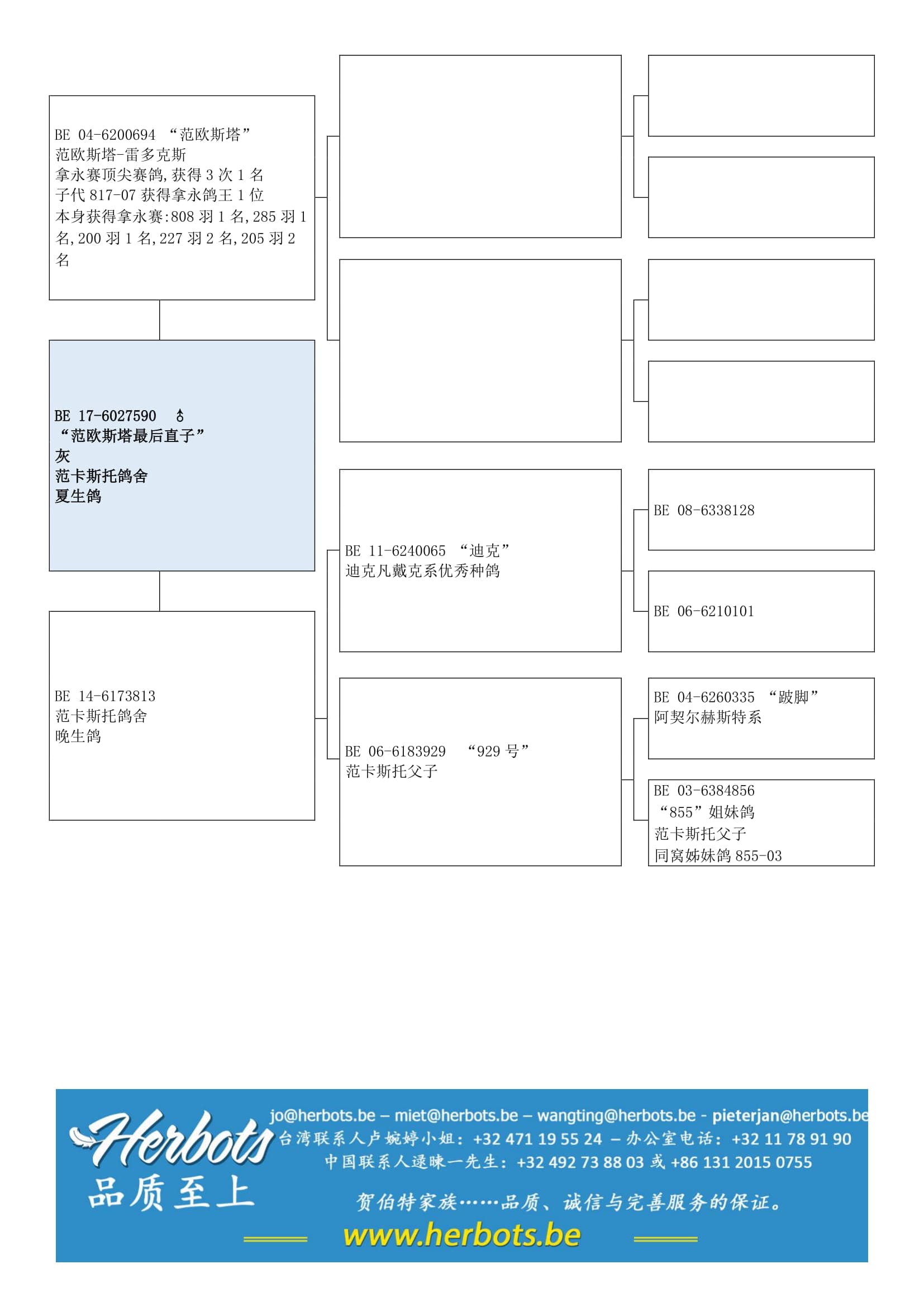 父亲: “范欧斯塔” B04-6200694荣获拿永:808羽1名–285羽1名–200羽1名 -227羽2名–205羽2名范卡斯托鸽舍的基础种鸽