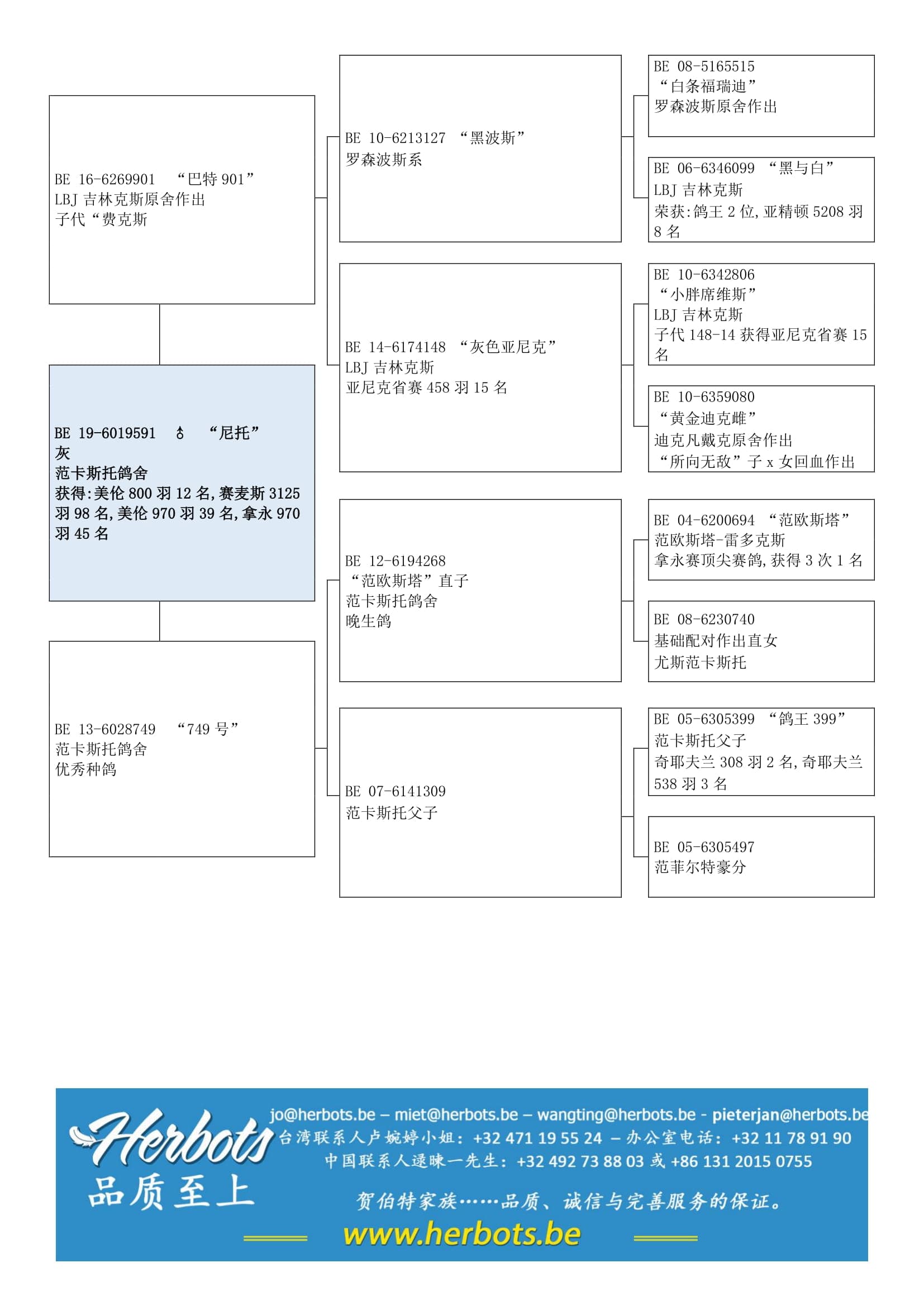 出自 “黑波斯” (“福瑞迪”和“白头席维斯” x “威利雌”直孙) x “灰亚尼克” (“白头 席维斯” x “布鲁瓦小姐”直孙)