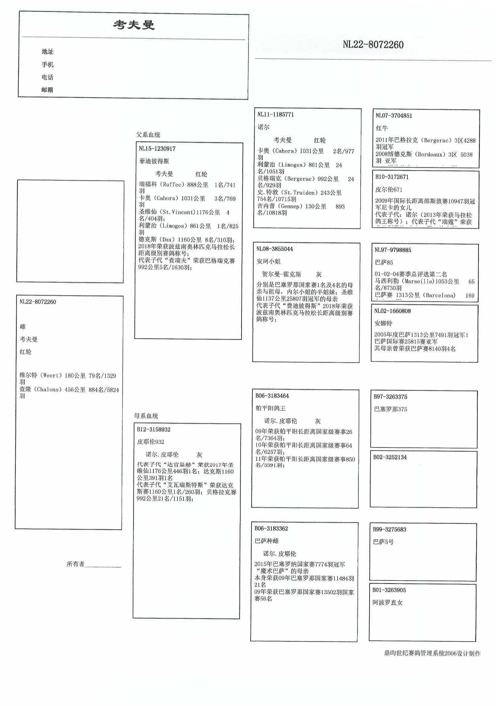 “波品纳鸽王” B06-3183464 赢得: