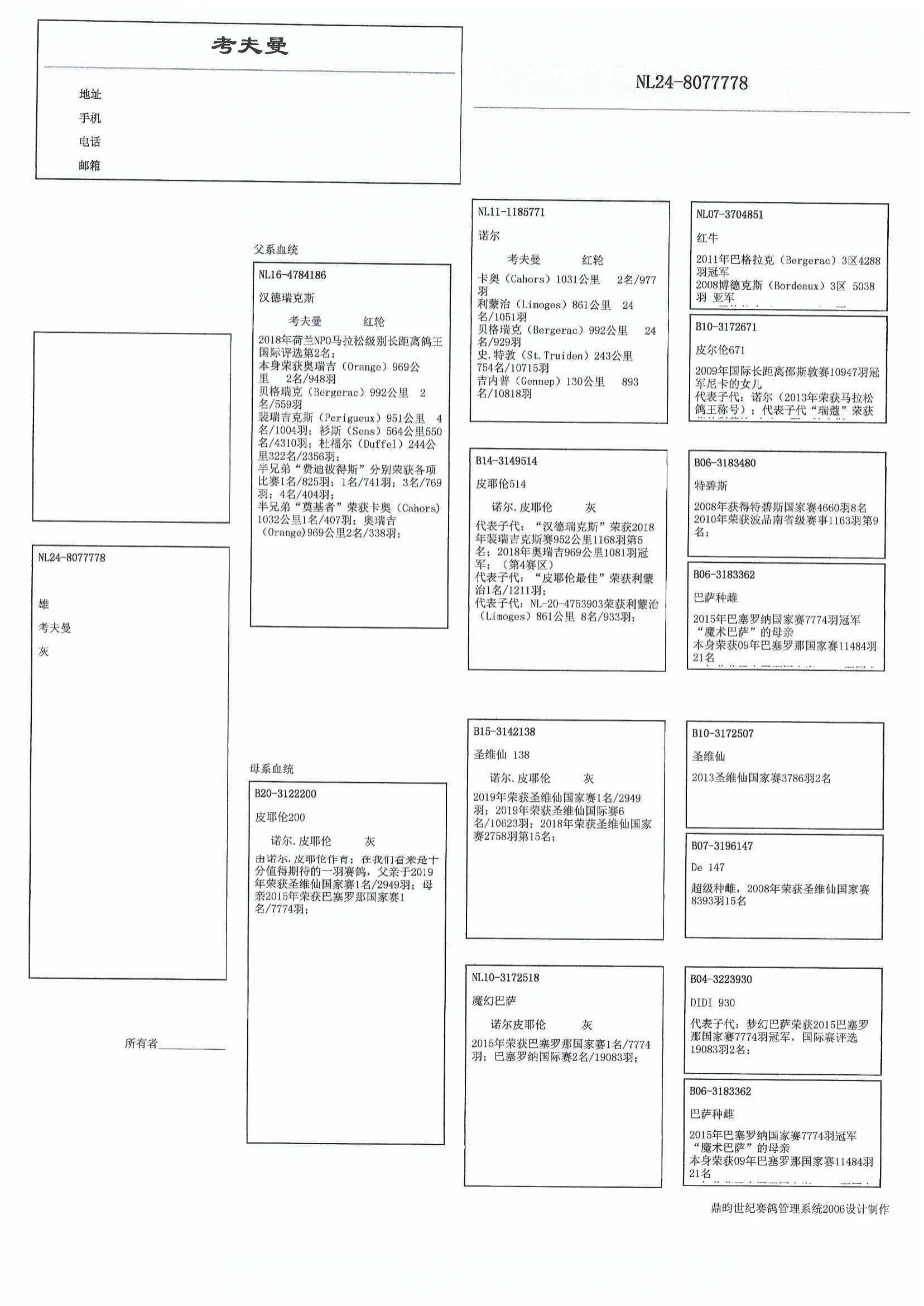 3名 全国世界最佳赛鸽 FCI 2024