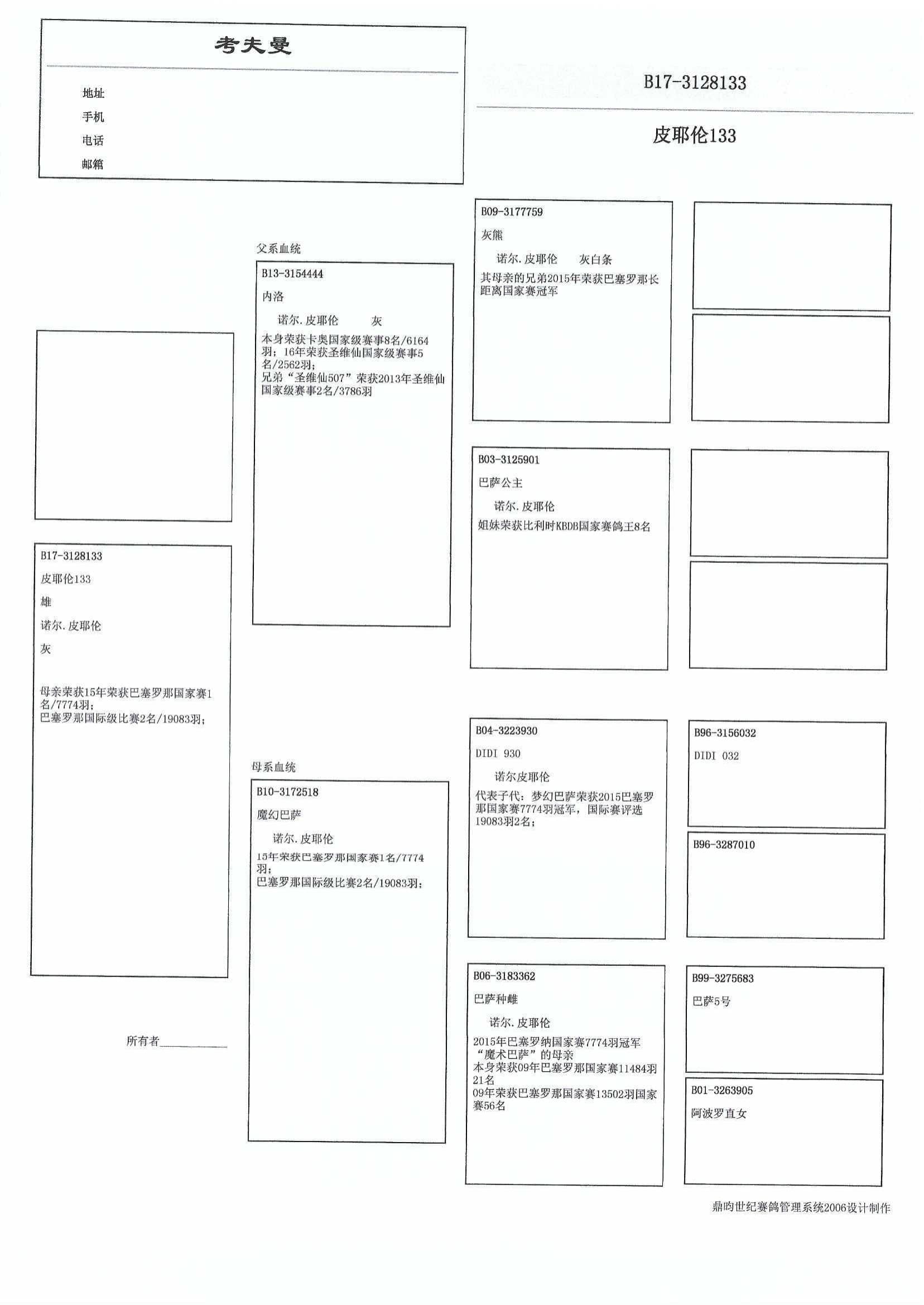 “灰熊” (其母亲的兄弟2015年荣获巴塞罗那长距离国家赛冠军) x “巴萨公主”(姐妹荣获比利时KBDB国家赛鸽王8名)