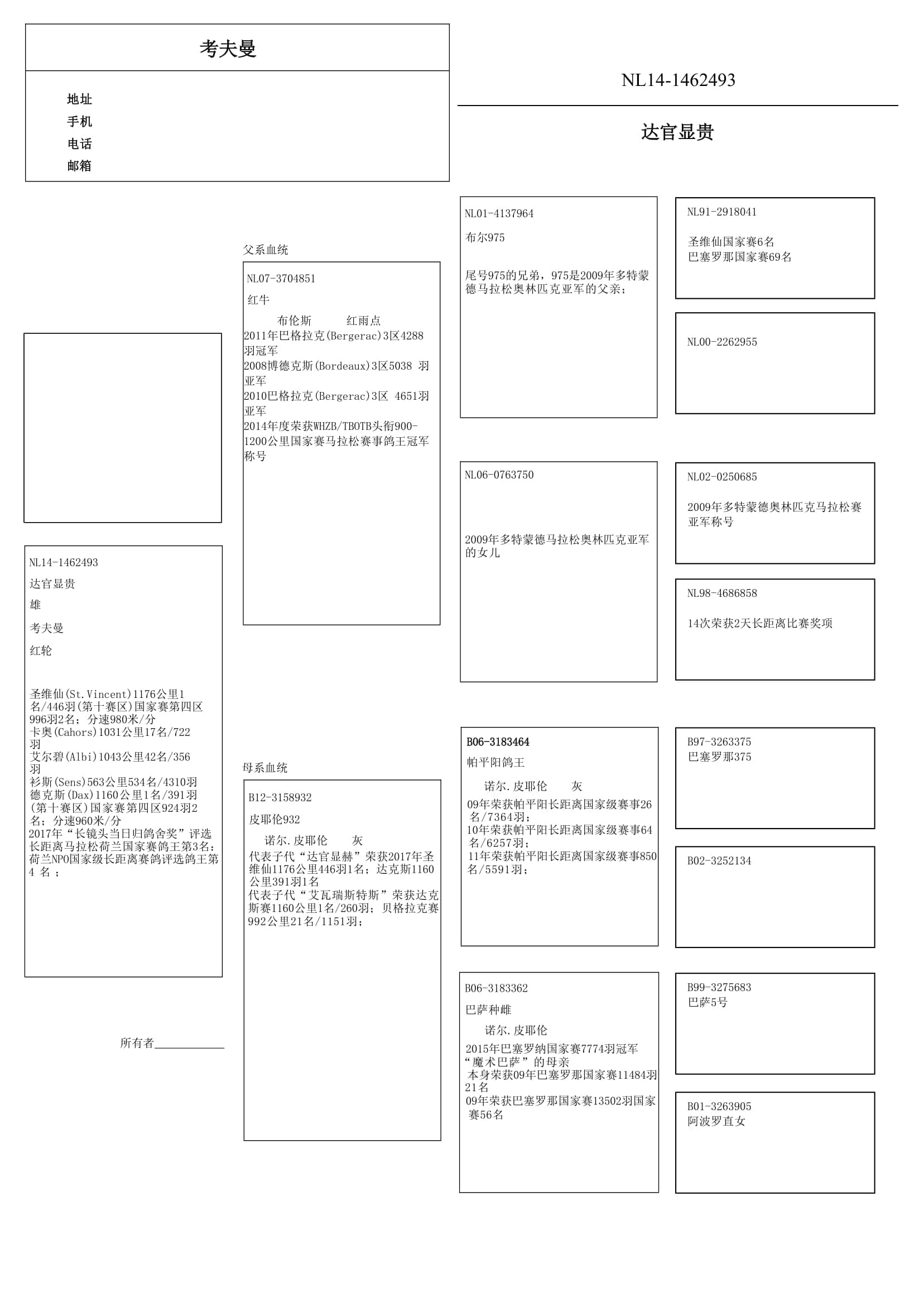 “波品纳鸽王” B06-3183464 赢得: